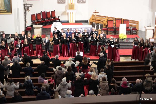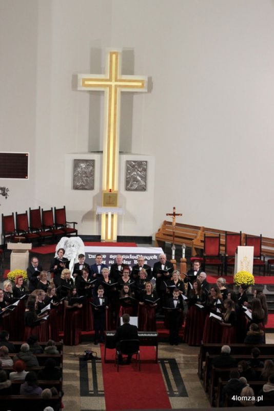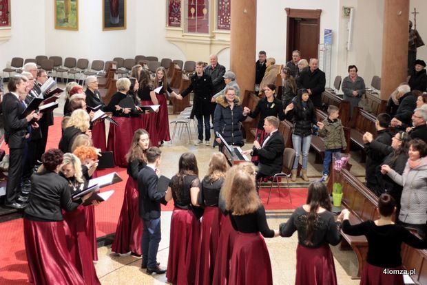 – Działamy przy parafii, więc śpiewamy głównie utwory sakralne, ale też ludowe, a także chorał gregoriański. W ramach chóru działa też męski zespół wokalny, który zakwalifikował się właśnie do udziału w V Ogólnopolskim Konkursie Chórów im. ks. Jana Bosko w Aleksandrowie Kujawskim. Cieszę się, że w tak krótkim czasie udało się nam pozyskać tak wielu pasjonatów śpiewu, ale cały czas zapraszam w nasze szeregi wszystkich chętnych śpiewaków! O tym, że istniejący tak krótko chór rzeczywiście prezentuje już naprawdę wysoki poziom mogli przekonać się ci wszyscy, którzy po niedzielnej sumie pozostali w świątyni Krzyża Świętego. Już psalm „Nieście chwałę mocarze” Mikołaja Gomółki zachwycił słuchaczy, a później chórzyści zaśpiewali jeszcze m.in. „Psalm o miłosierdziu”, „Przyjdź Duchu Święty”, chorał gregoriański „Zbliżam się w pokorze”, zaś na finał jedną z ulubionych pieśni Jana Pawła II „Abba Ojcze”.– Bardzo dziękuję wszystkim tym, którzy wspierają mnie w Łomży w mojej pracy, szczególnie chórzystom: tym młodszym i tym starszym, bo to fajna współpraca w świetnej atmosferze – mówi Michał Rajewski.
