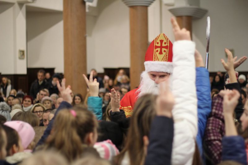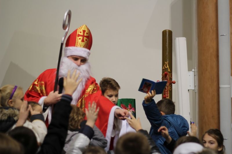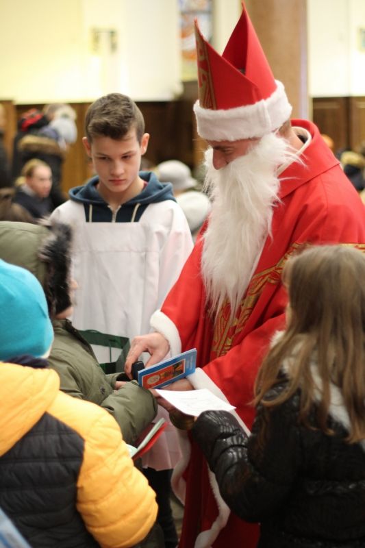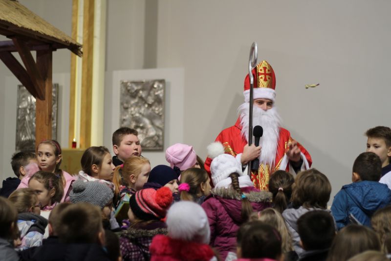 m IMG 8051Nie lada niespodzianka spotkała dzieci z naszej parafii w minioną niedzielę 4 grudnia. Swoją wizytę złożył im prawdziwy święty Mikołaj, który od progu świątyni witał naszych najmłodszych parafian. Podczas kazania sprawdzał ich wiedzę na temat świętego z Miry.