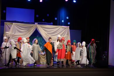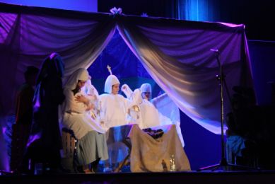 109Jak wielowiekowa tradycja każe, Grupa Teatralna "Bez Nazwy" działająca przy naszej parafii, przedstawiła jasełka pt. "Broda Heroda, czyli jak Bóg zło w dobro przemienił". Spektakle, które obejrzało niemal 1300 dzieci z łomżyńskich szkół i przedszkoli, wystawione zostały 13 i 16 stycznia w sali widowiskowej Centrum Kultury, przy ul. Sadowej 12. Ciekawe, barwne kostiumy zaprojektowane przez Teresę Adamowską, z wielkim kunsztem wykonała Karolina Borkowska. Ks. Grzegorz Chełstowski, zajął się scenografią i osobiście wykonał kilka rekwizytów, zaś nad budową dekoracji czuwali niezawodni jak zawsze Andrzej Gosk i Stanisław Rakowicz. Zaangazowana była także  Eliza Kotomska. Podczas spektakli ks. Grzegorz odpowiadał za udźwiękowienie przedstawień, natomiast realizacją efektów świetlnych zajął się Karol Śliwowski i Marcin Sokołowski. Autorem scenariusza jasełek jest Adam Szafraniec, który jest także współautorem muzyki wraz z Arturem Kaszowskim.
