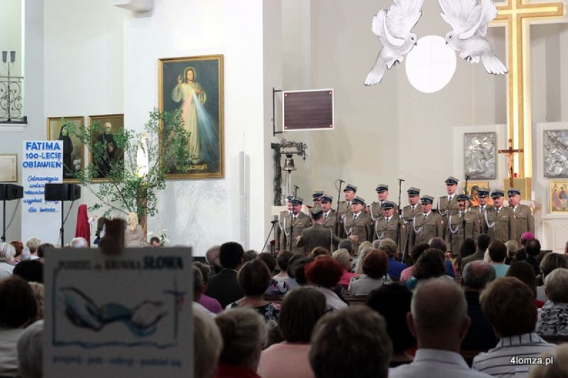 Chór Reprezentacyjnego Zespołu Artystycznego Wojska Polskiego uświetnił swym udziałem niedzielną mszę z 20-lecia parafii Krzyża Świętego. Po uroczystym nabożeństwie artyści w mundurach wykonali też regularny , zachwycając licznych słuchaczy patriotycznymi i wojskowymi piosenkami: od „Hej strzelcy wraz” do bisowanej „Pierwszej kadrowej”.– Tych przeżyć nie da się opowiedzieć! – podkreślał ks. biskup Tadeusz Bronakowski dziękując artystom. – Tu jest prawdziwa Polska panowie i za to wam z całego serca dziękuję! Dziękuję też, że nie tylko w Łomży, ale wszędzie gdzie występujecie, uczycie ogromnej miłości i do Pana Boga, i do naszej umiłowanej Ojczyzny.
