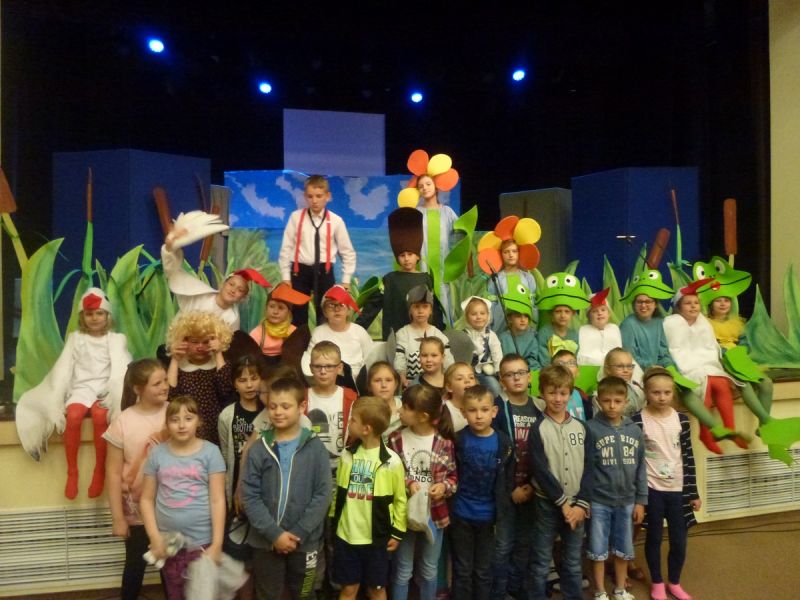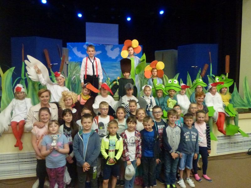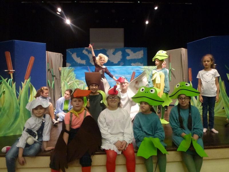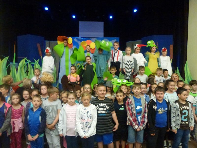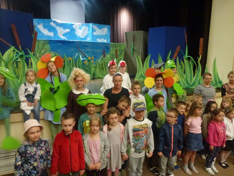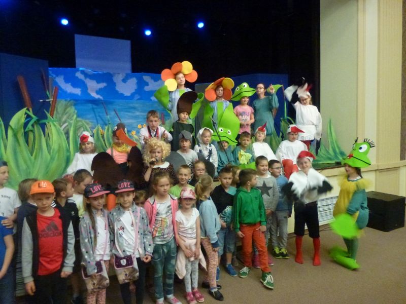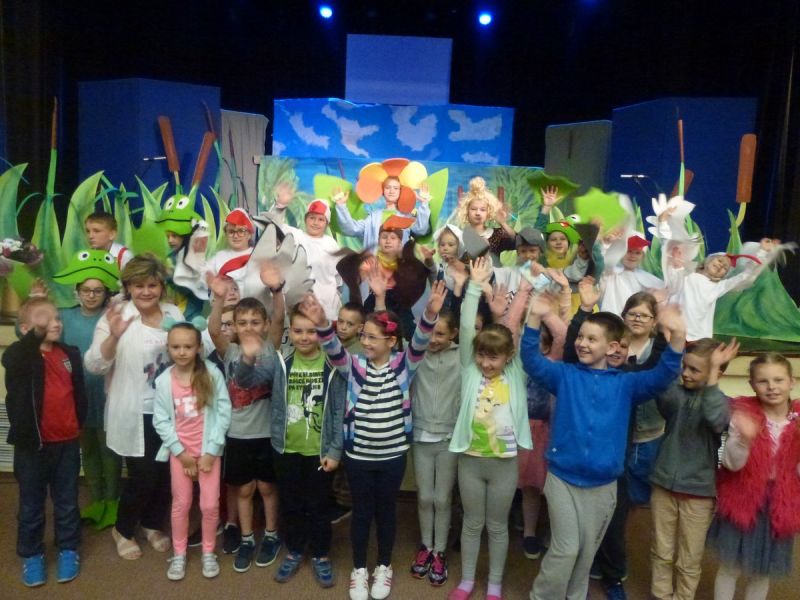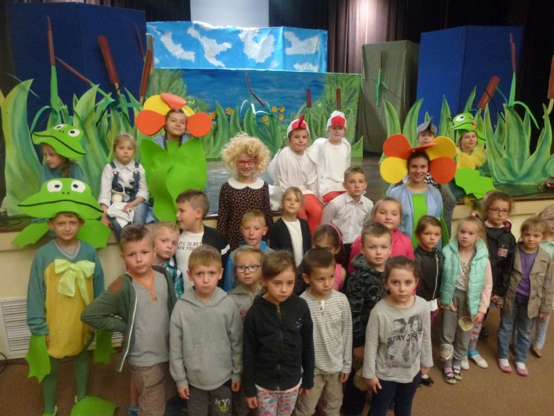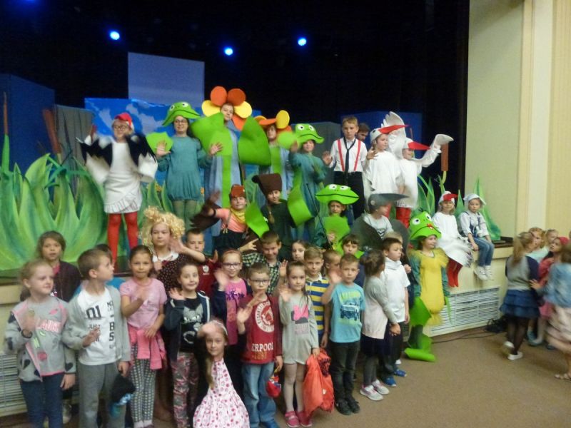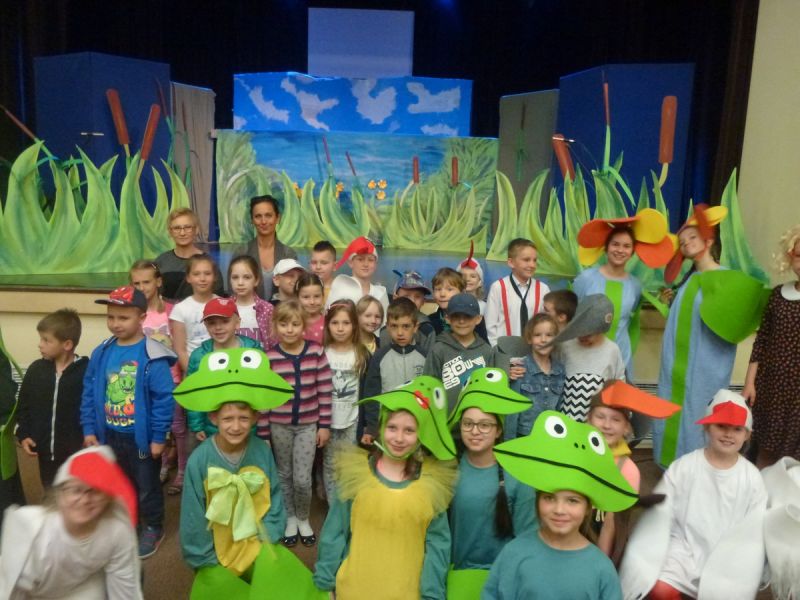 Ciekawe i kolorowe kostiumy zaprojektowała Teresa Adamowska i jak zwykle z wielkim kunsztem wykonała Karolina Borkowska. Nasz wikariusz ks. Grzegorz Chełstowski wykonał wiosenną , w sielskim nastroju scenografię, wspierany jak zawsze przez niezawodnych Stanisława Rakowicza i Andrzeja Goska. Ks.Grzegorz odpowiadał również za udźwiękowienie przedstawień ,a Karol Śliwowski realizował efekty świetlne. Swój czas poświęcił nam też Janusz Ramatowski, dzięki któremu nagraliśmy piosenki. Pani Joanna Zalewska pracowała z aktorami nad choreografią . Wzrusza taniec rodziny bocianiej czy komiczny taniec żabiej rodziny. W transporcie scenografii pomagali rodzice i dzielni strażacy z Pniewa. Organizacją widowni zajęła się Ewa Gąsiorowska. Autorem scenariusza i muzyki jest Adam Szafraniec, reżyserem Alicja Żelazna, a nasze przedstawienia rejestruje Zbigniew Zalewski.
