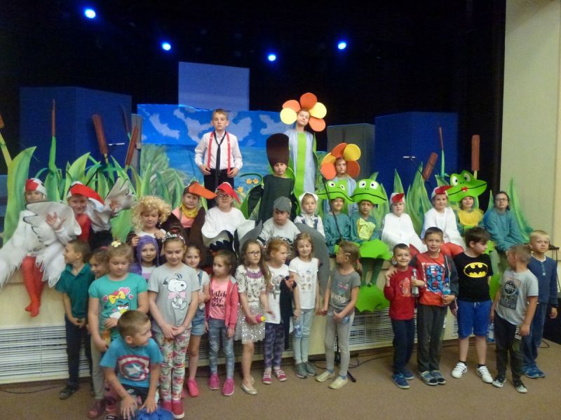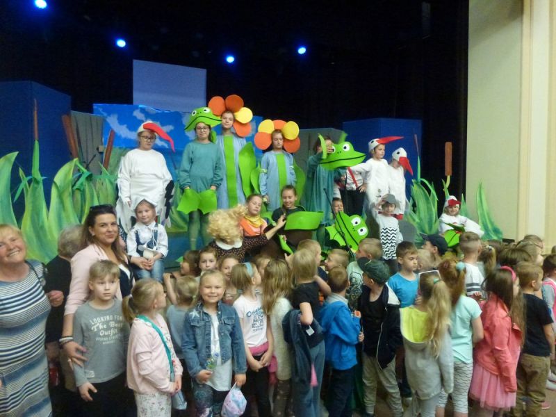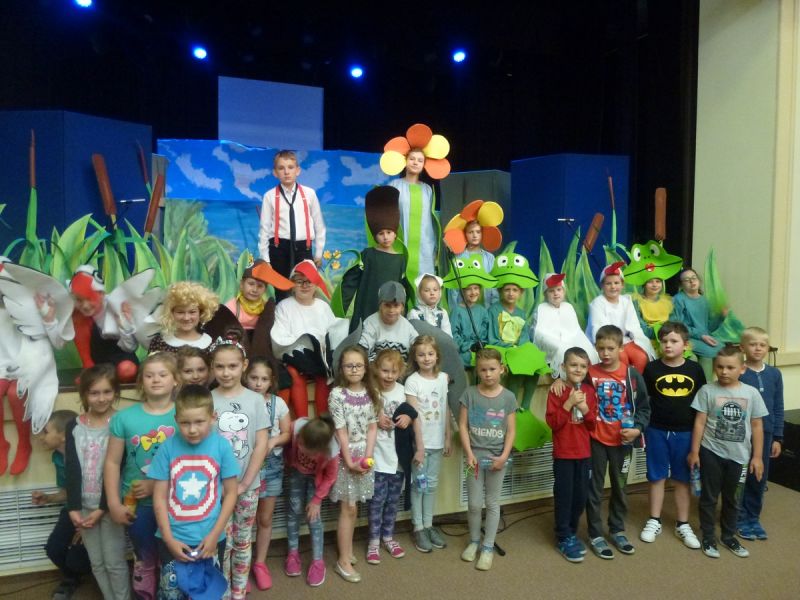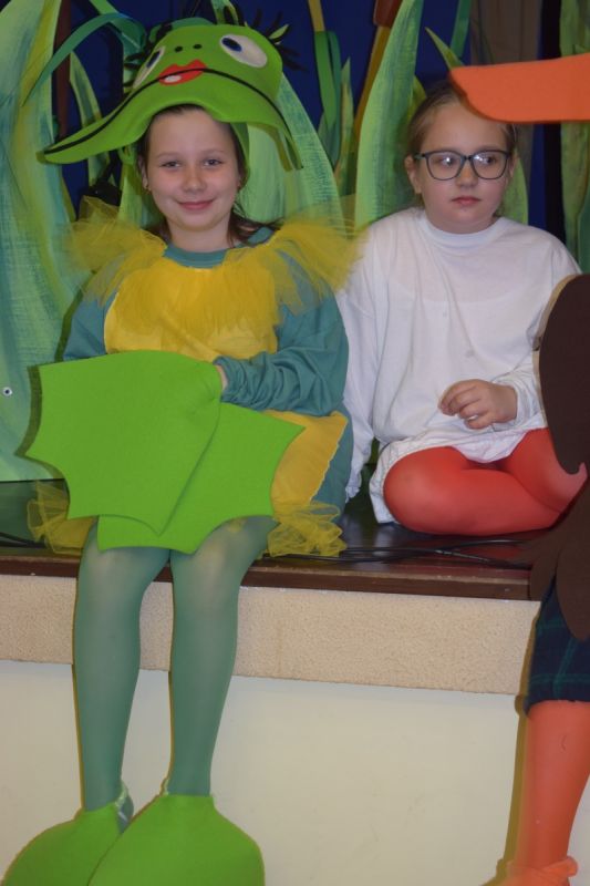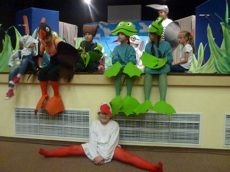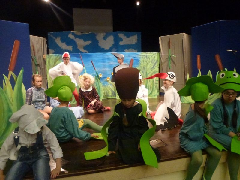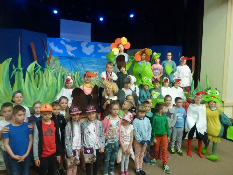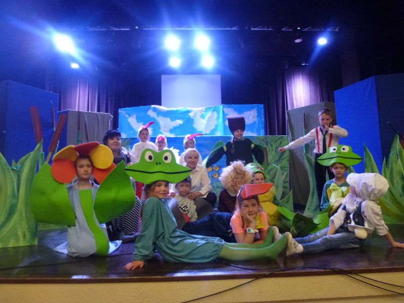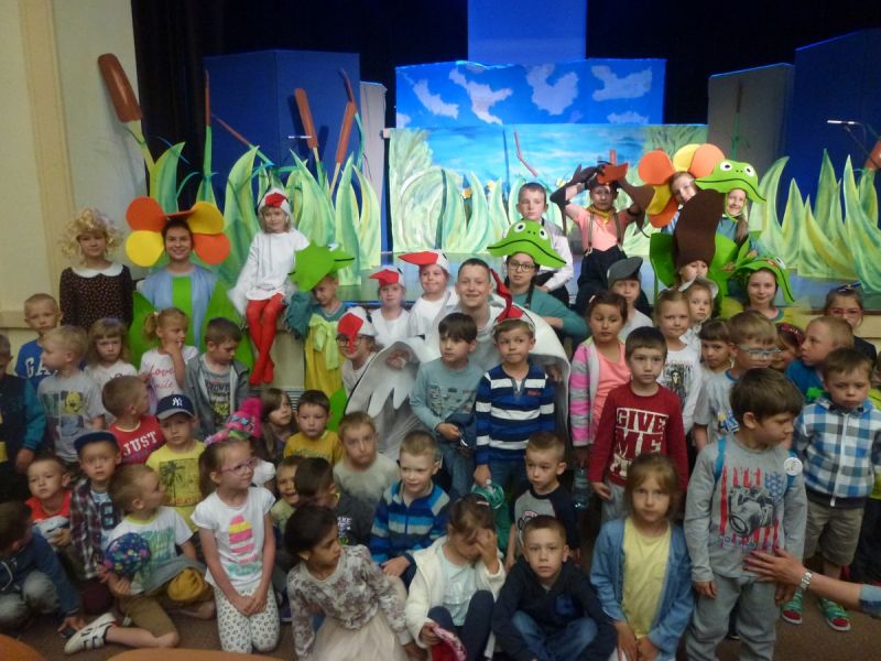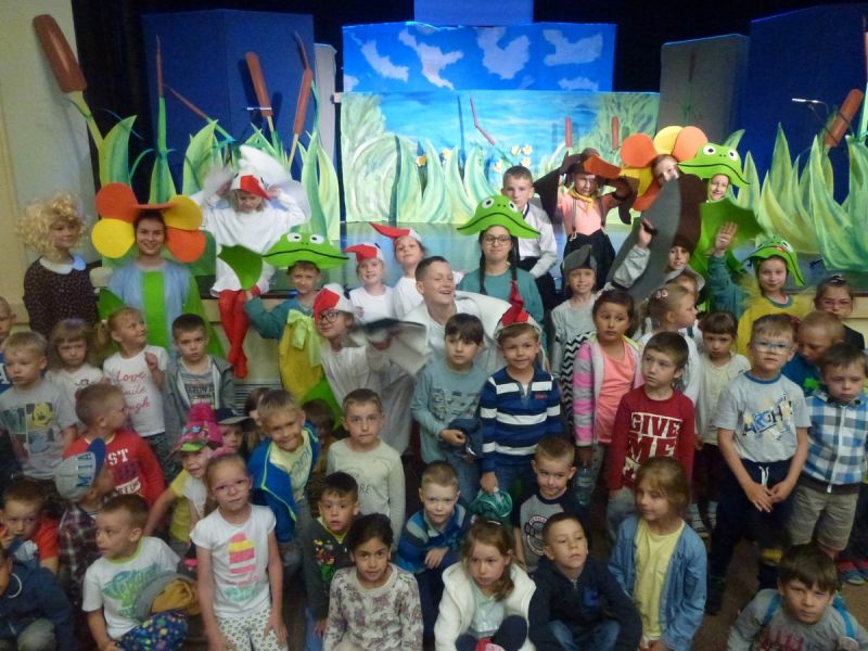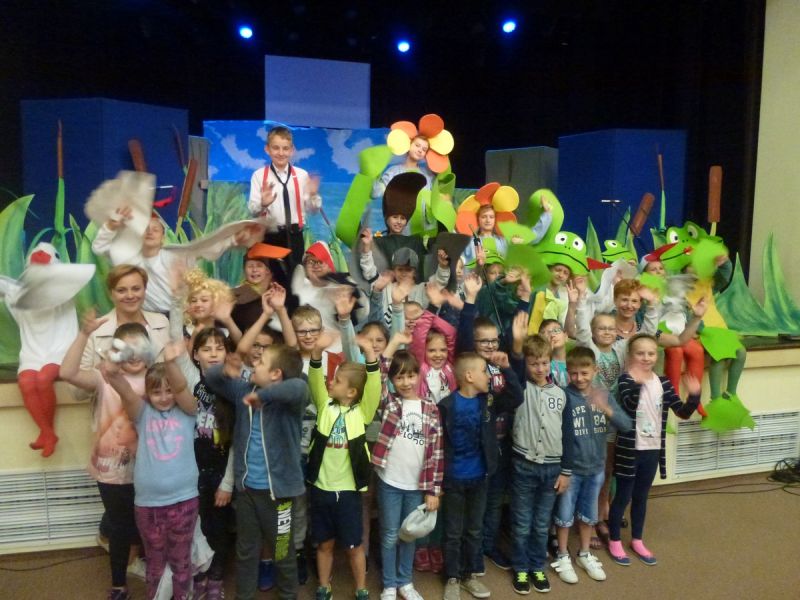 Ciekawe i kolorowe kostiumy zaprojektowała Teresa Adamowska i jak zwykle z wielkim kunsztem wykonała Karolina Borkowska. Nasz wikariusz ks. Grzegorz Chełstowski wykonał wiosenną , w sielskim nastroju scenografię, wspierany jak zawsze przez niezawodnych Stanisława Rakowicza i Andrzeja Goska. Ks.Grzegorz odpowiadał również za udźwiękowienie przedstawień ,a Karol Śliwowski realizował efekty świetlne. Swój czas poświęcił nam też Janusz Ramatowski, dzięki któremu nagraliśmy piosenki. Pani Joanna Zalewska pracowała z aktorami nad choreografią . Wzrusza taniec rodziny bocianiej czy komiczny taniec żabiej rodziny. W transporcie scenografii pomagali rodzice i dzielni strażacy z Pniewa. Organizacją widowni zajęła się Ewa Gąsiorowska. Autorem scenariusza i muzyki jest Adam Szafraniec, reżyserem Alicja Żelazna, a nasze przedstawienia rejestruje Zbigniew Zalewski.