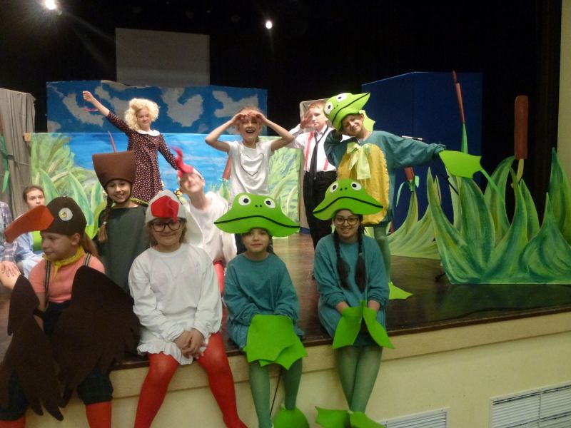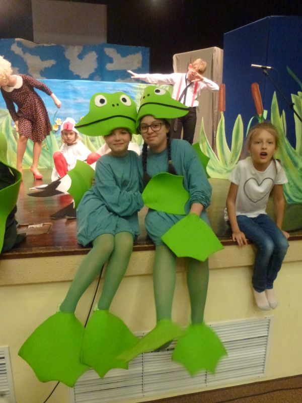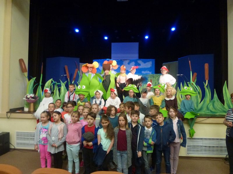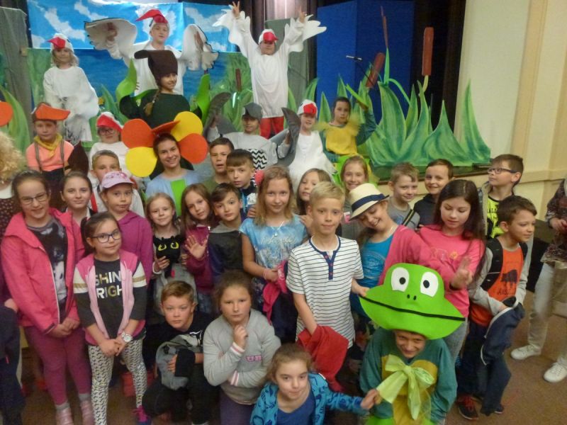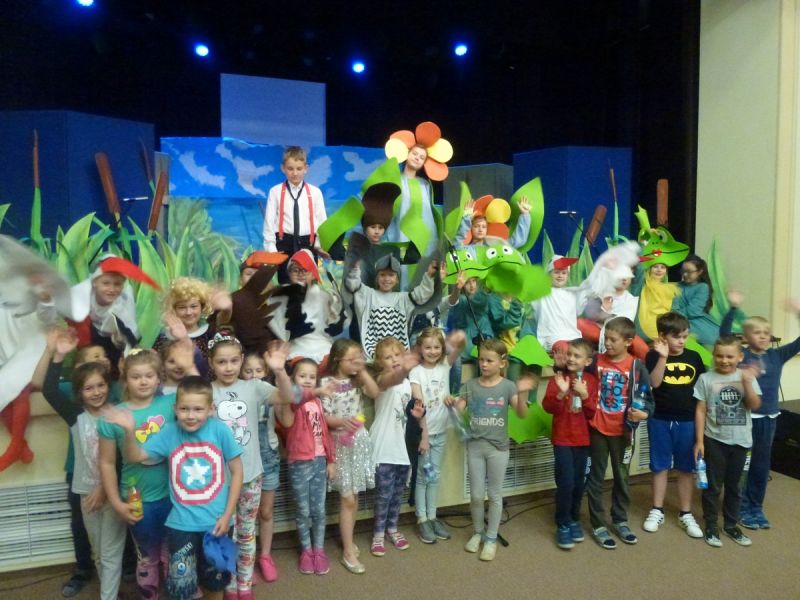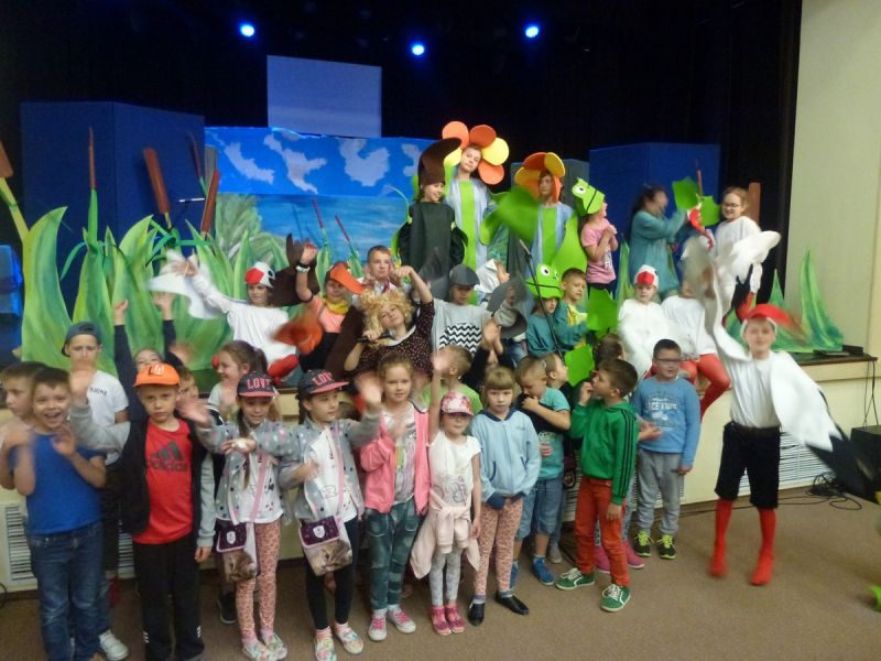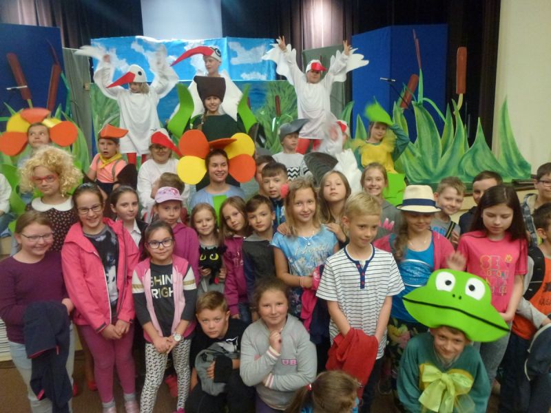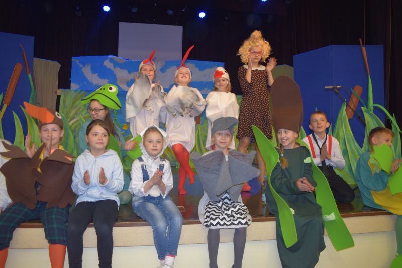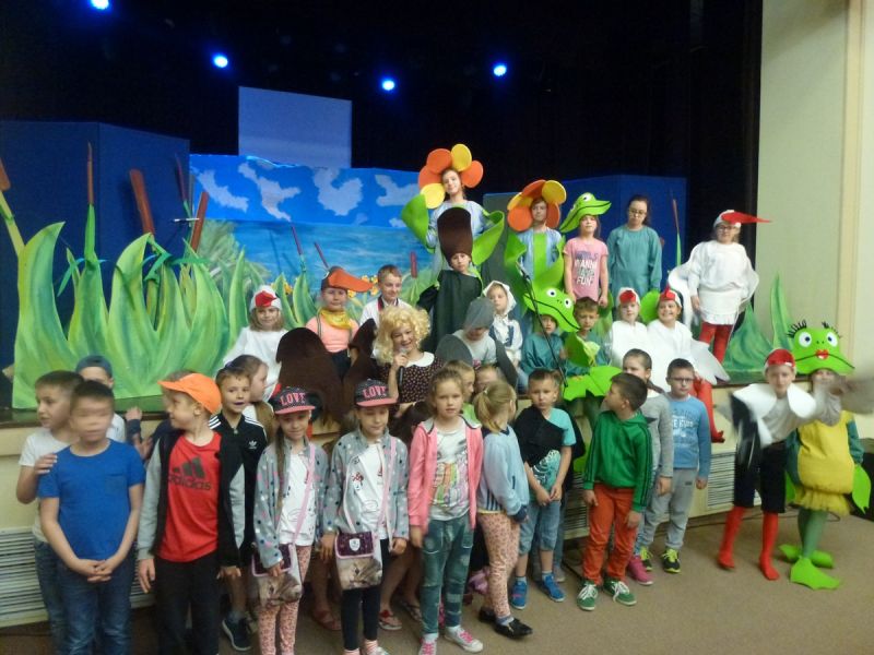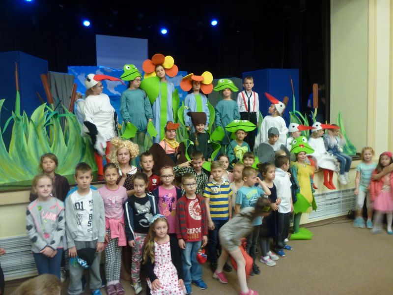 Ciekawe i kolorowe kostiumy zaprojektowała Teresa Adamowska i jak zwykle z wielkim kunsztem wykonała Karolina Borkowska. Nasz wikariusz ks. Grzegorz Chełstowski wykonał wiosenną , w sielskim nastroju scenografię, wspierany jak zawsze przez niezawodnych Stanisława Rakowicza i Andrzeja Goska. Ks.Grzegorz odpowiadał również za udźwiękowienie przedstawień ,a Karol Śliwowski realizował efekty świetlne. Swój czas poświęcił nam też Janusz Ramatowski, dzięki któremu nagraliśmy piosenki. Pani Joanna Zalewska pracowała z aktorami nad choreografią . Wzrusza taniec rodziny bocianiej czy komiczny taniec żabiej rodziny. W transporcie scenografii pomagali rodzice i dzielni strażacy z Pniewa. Organizacją widowni zajęła się Ewa Gąsiorowska. Autorem scenariusza i muzyki jest Adam Szafraniec, reżyserem Alicja Żelazna, a nasze przedstawienia rejestruje Zbigniew Zalewski.