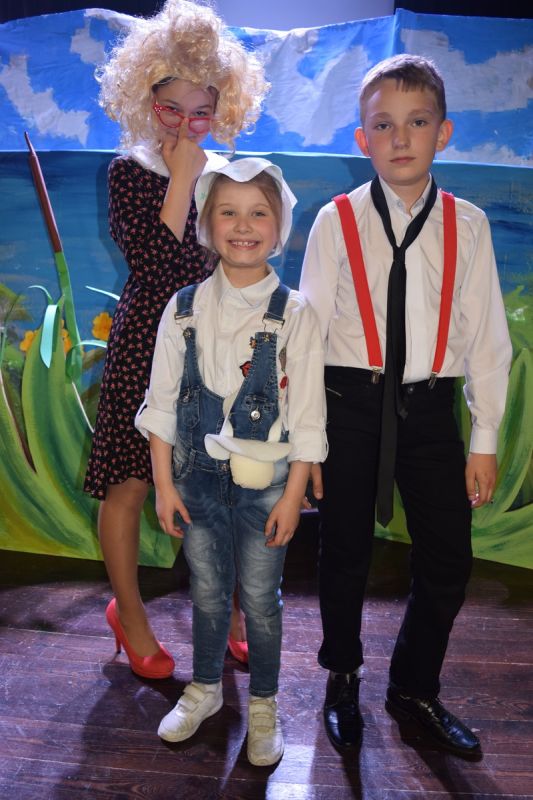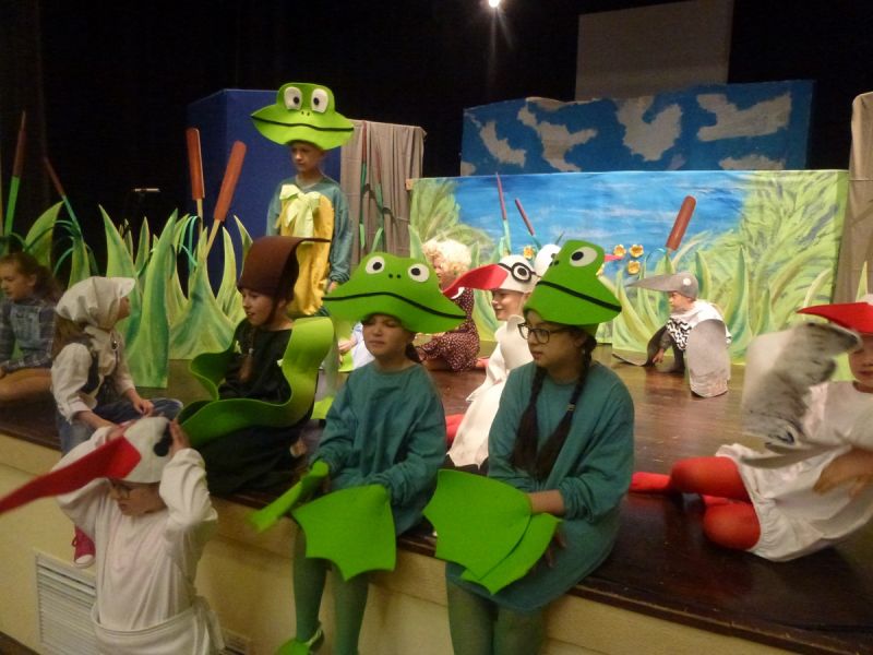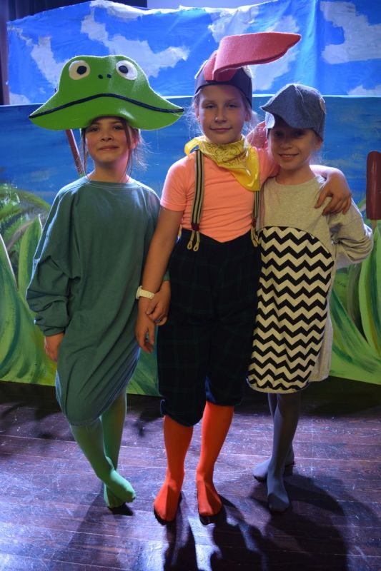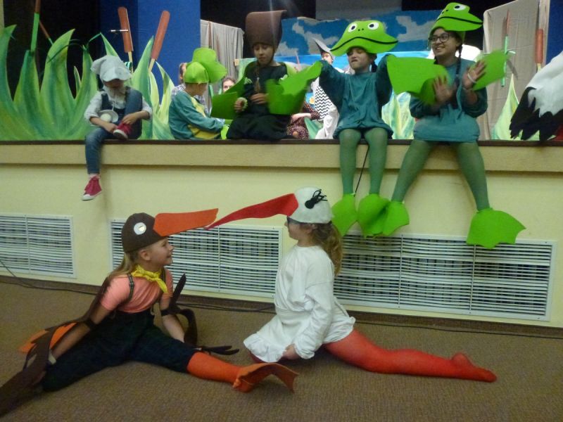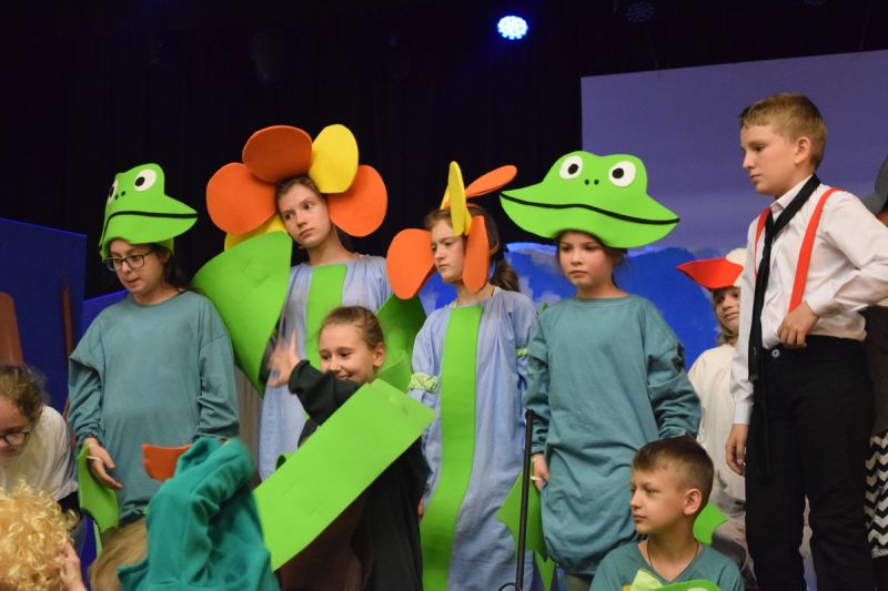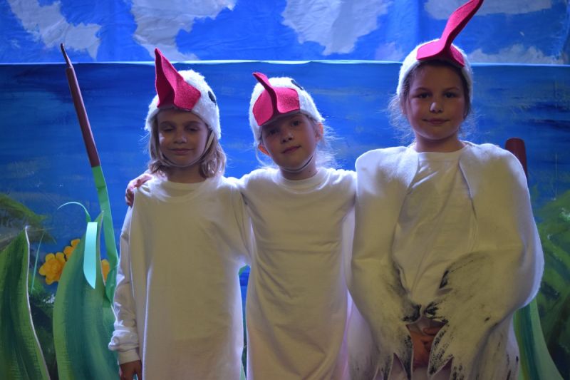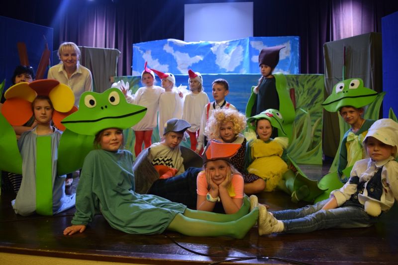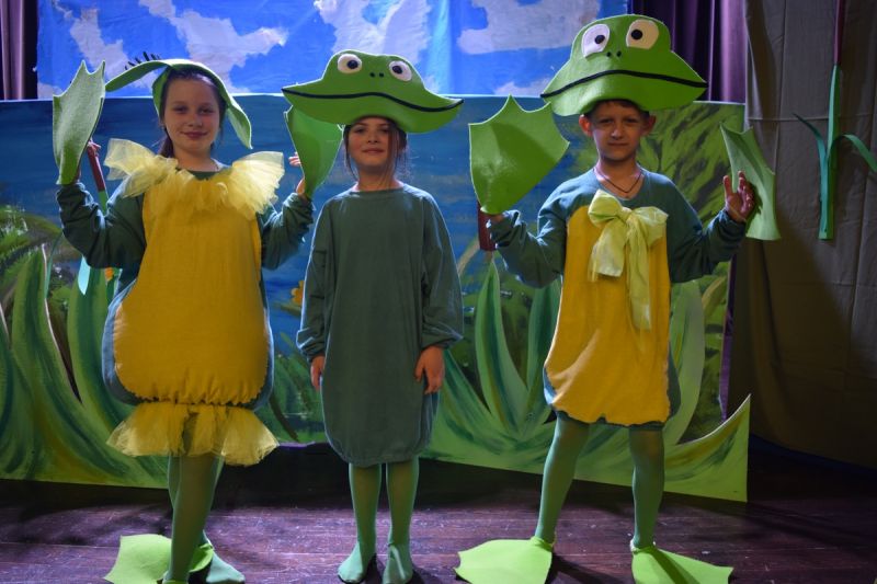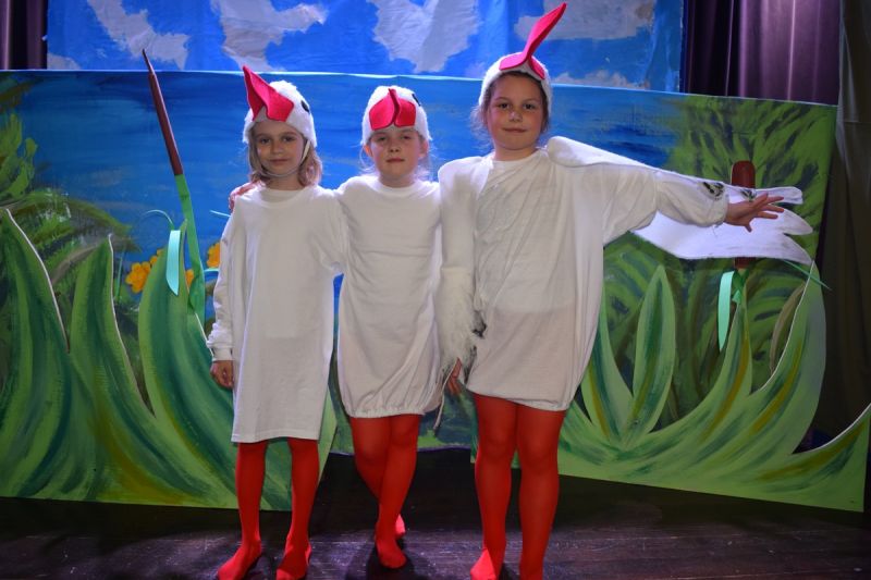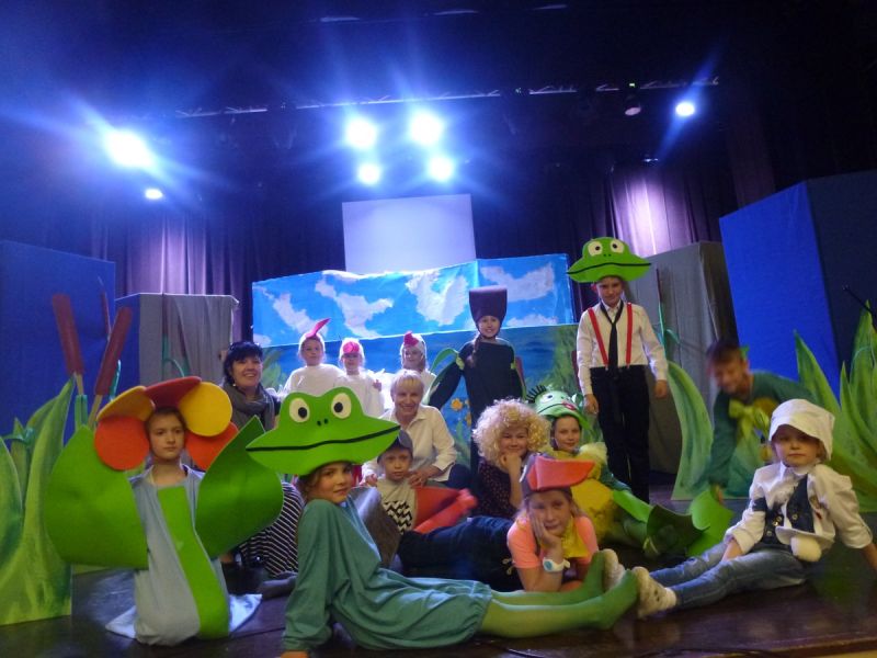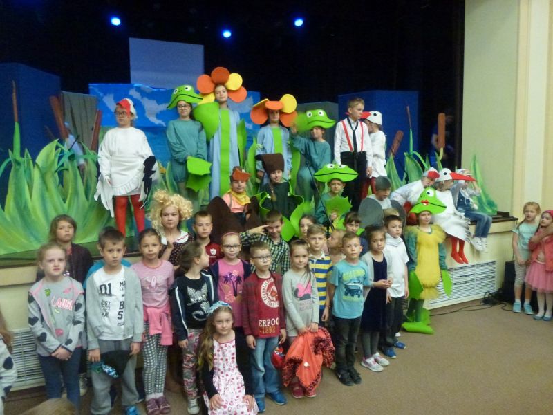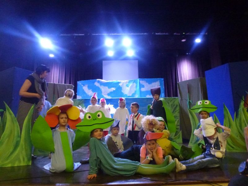 Ciekawe i kolorowe kostiumy zaprojektowała Teresa Adamowska i jak zwykle z wielkim kunsztem wykonała Karolina Borkowska. Nasz wikariusz ks. Grzegorz Chełstowski wykonał wiosenną , w sielskim nastroju scenografię, wspierany jak zawsze przez niezawodnych Stanisława Rakowicza i Andrzeja Goska. Ks.Grzegorz odpowiadał również za udźwiękowienie przedstawień ,a Karol Śliwowski realizował efekty świetlne. Swój czas poświęcił nam też Janusz Ramatowski, dzięki któremu nagraliśmy piosenki. Pani Joanna Zalewska pracowała z aktorami nad choreografią . Wzrusza taniec rodziny bocianiej czy komiczny taniec żabiej rodziny. W transporcie scenografii pomagali rodzice i dzielni strażacy z Pniewa. Organizacją widowni zajęła się Ewa Gąsiorowska. Autorem scenariusza i muzyki jest Adam Szafraniec, reżyserem Alicja Żelazna, a nasze przedstawienia rejestruje Zbigniew Zalewski.