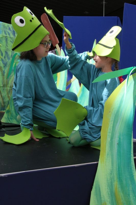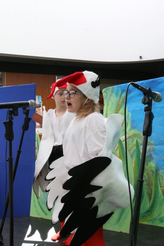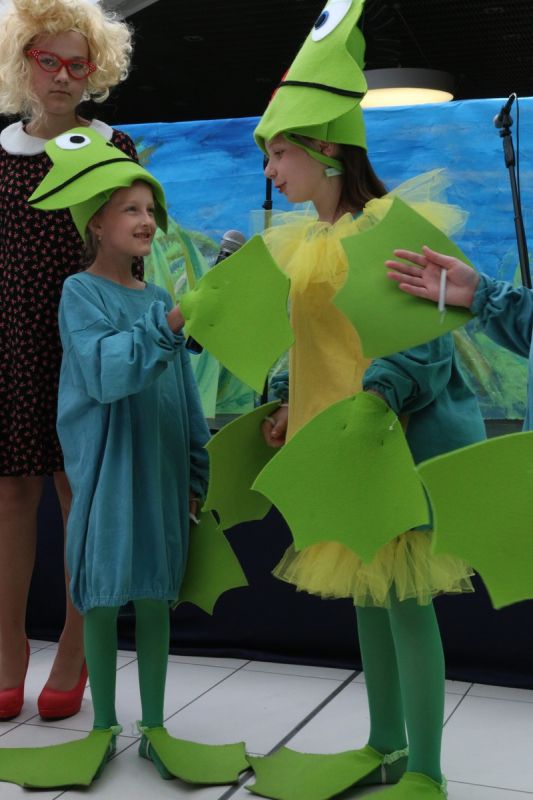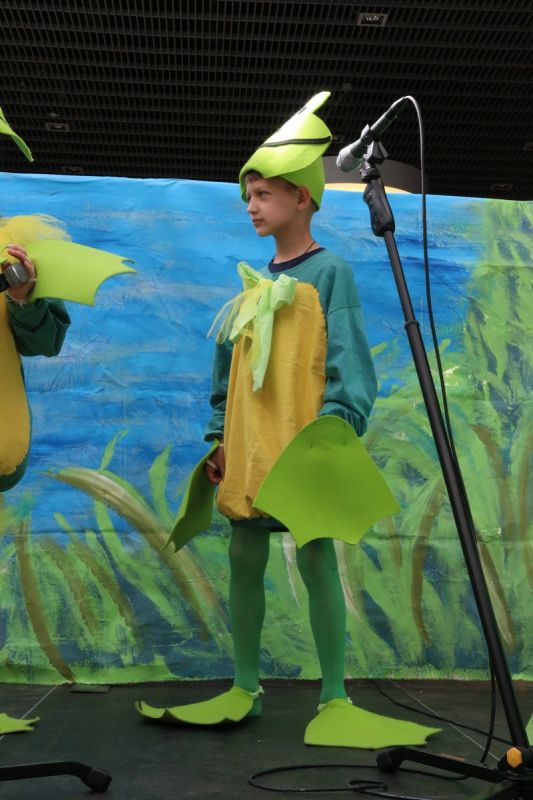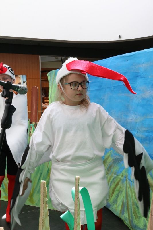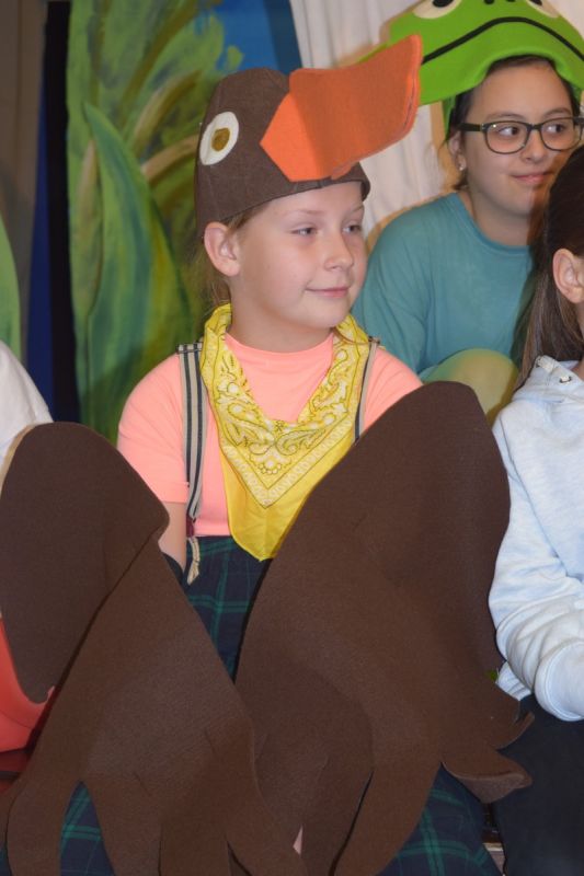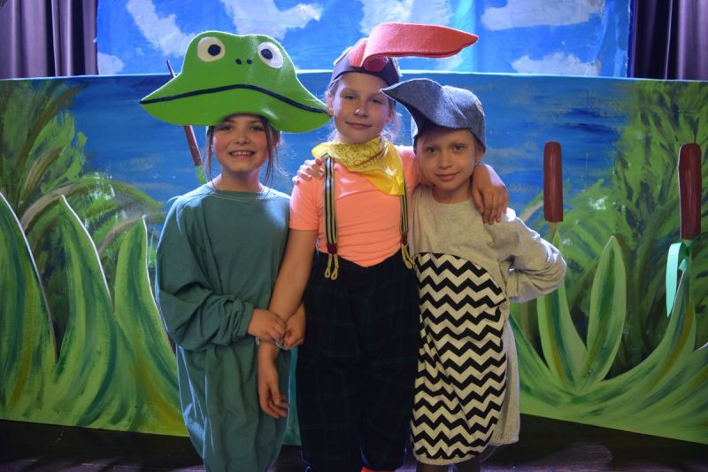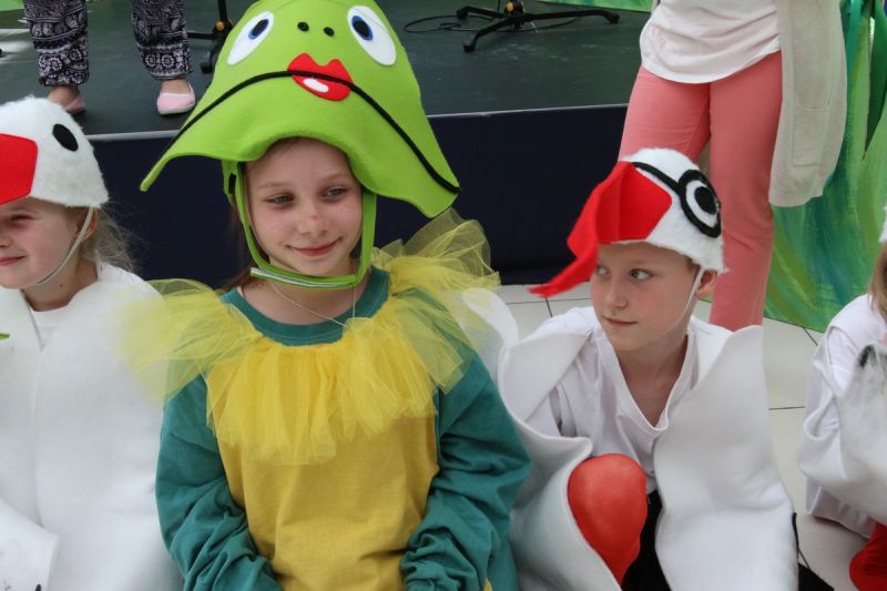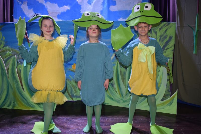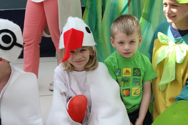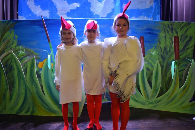 Ciekawe i kolorowe kostiumy zaprojektowała Teresa Adamowska i jak zwykle z wielkim kunsztem wykonała Karolina Borkowska. Nasz wikariusz ks. Grzegorz Chełstowski wykonał wiosenną , w sielskim nastroju scenografię, wspierany jak zawsze przez niezawodnych Stanisława Rakowicza i Andrzeja Goska. Ks.Grzegorz odpowiadał również za udźwiękowienie przedstawień ,a Karol Śliwowski realizował efekty świetlne. Swój czas poświęcił nam też Janusz Ramatowski, dzięki któremu nagraliśmy piosenki. Pani Joanna Zalewska pracowała z aktorami nad choreografią . Wzrusza taniec rodziny bocianiej czy komiczny taniec żabiej rodziny. W transporcie scenografii pomagali rodzice i dzielni strażacy z Pniewa. Organizacją widowni zajęła się Ewa Gąsiorowska. Autorem scenariusza i muzyki jest Adam Szafraniec, reżyserem Alicja Żelazna, a nasze przedstawienia rejestruje Zbigniew Zalewski.