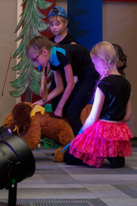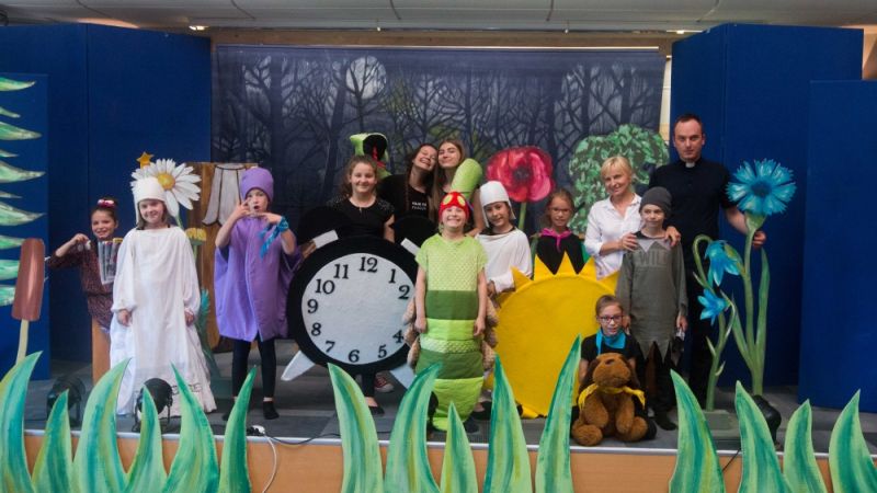 W realizacji przedstawienia pomagalo nam wiele osób. Pani Kasia Szmitko przygotowała grupę wokalnie do nagrania piosenek. Pani Asia Zalewska pracowała nad choreografią do piosenek. Scenografię zaprojektował i nadał jej artystyczny koloryt ks.Grzegorz Chełstowski. Nasz wikariusz czuwal również nad dżwiękiem i oświetleniem podczas przedstawień. Bezcennych porad fachowych udzieliła nam Pani Bogusia Wierzchowska-Gosk. Ciekawe kostiumy i rekwizyty wykonała niezawodna Pani Karolina Borkowska z CzYżA handmade. W parafialnych zakamarkach odnależlismy płótno Pani Teresy Adamowskiej przedstawiające mroczny las przy świetle księżyca. Posłużyło nam ono jako tło do akcji w lesie. Do pomocy włączali się także rodzice młodych aktorów - mamy dostarczały nam słodkości, a w swojej pracowni stolarskiej Pan Horoszewski wyciął drewniane elementy scenografii.