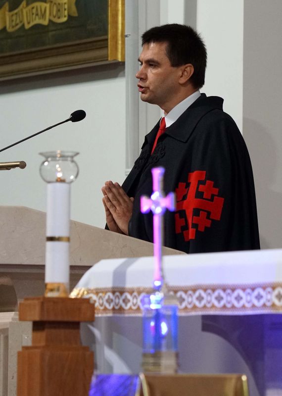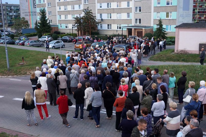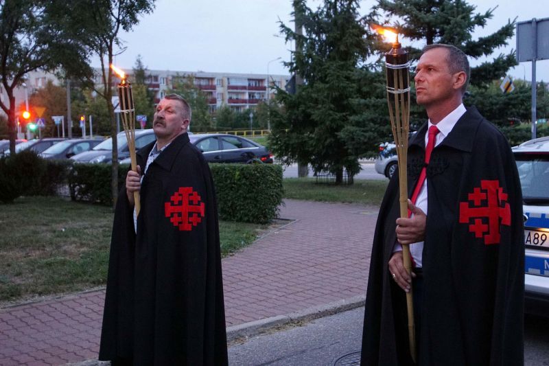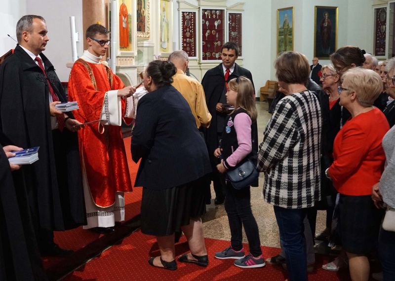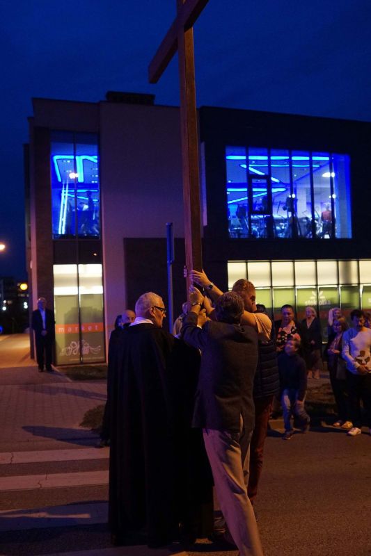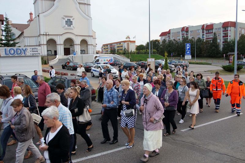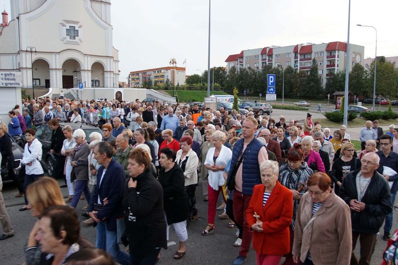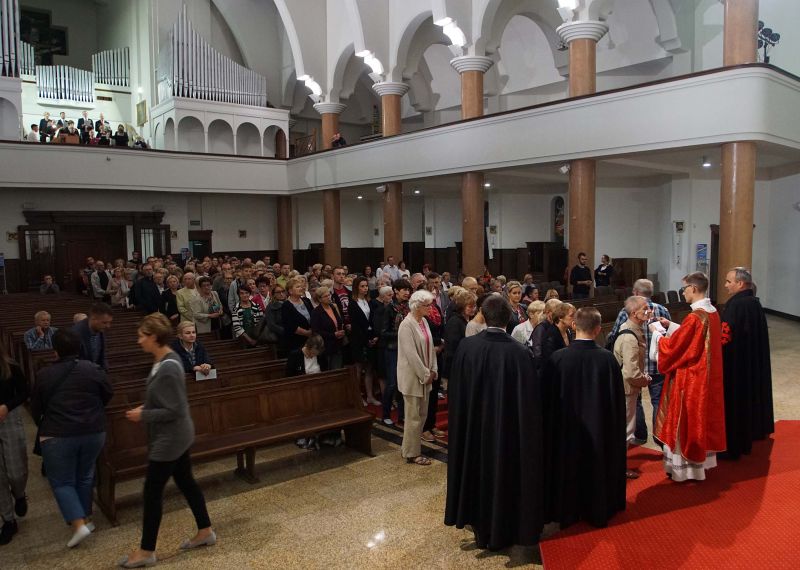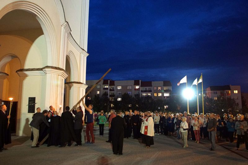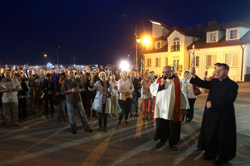 W czwartek, 13 września po wieczornej Mszy św. wyruszyliśmy ulicami naszego osiedla z nabożeństwem Drogi Krzyżowej, podczas których kilkuset parafian wysłuchało rozważań o. Waldemara przy każdej z XIV stacji. Także przy każdej ze stacji zmieniały się osoby niosące ogromny krzyż, który z kościoła jako pierwsi wynieśli członkowie Bractwa Krzyża – parafialni strażnicy relikwii Krzyża Świętego przechowywanych w naszej świątyni – niosąc go do stacji I.