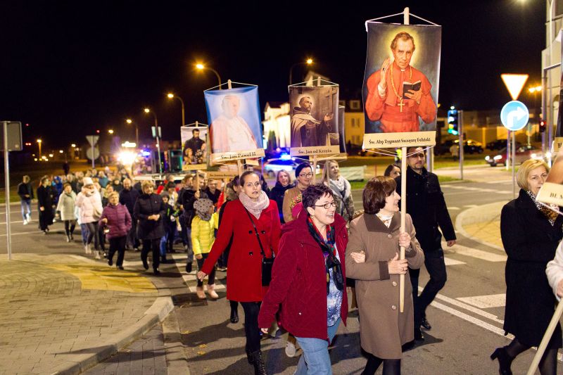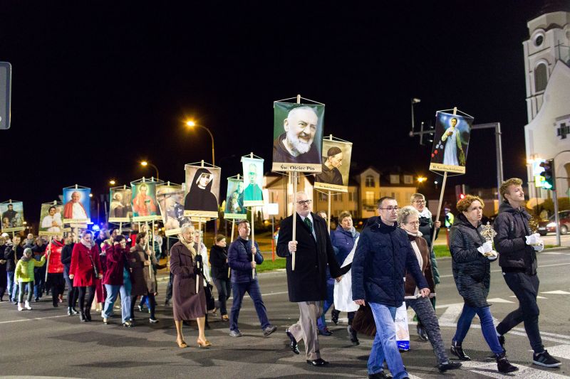 Korowód Świętych, którzy wygrali swe życie to odpowiedź wiernych parafii Krzyża św. i Bożego Ciała na niefortunne propagowanie pogańskiego święta śmierci, ciemności i zła. W ostatni październikowy wieczór po Mszy św., niosąc relikwie naszych świętych patronow, wraz z ks. Biskupem Tadeuszem wyszliśmy na ulice naszego miasta, by jeszcze raz pokazać, że tak jak oni kochamy życie, światło i dobro. Rozśpiewana i przebrana procesja zakończyła się modlitwą uwielbienia i prośby, byśmy też pozwalali Bogu wygrywać nasze życie idąc drogą świętości. Dziękujemy wszystkim uczestnikom Korowodu i zapraszamy już za rok .