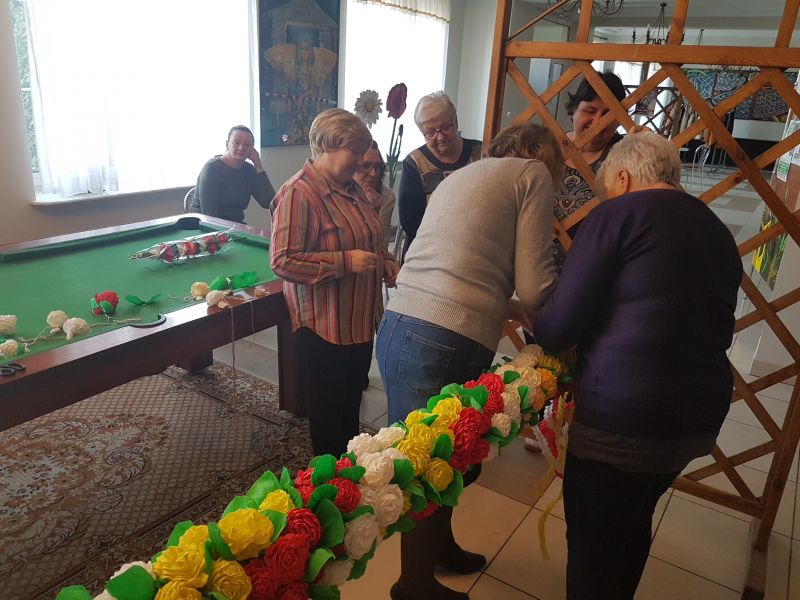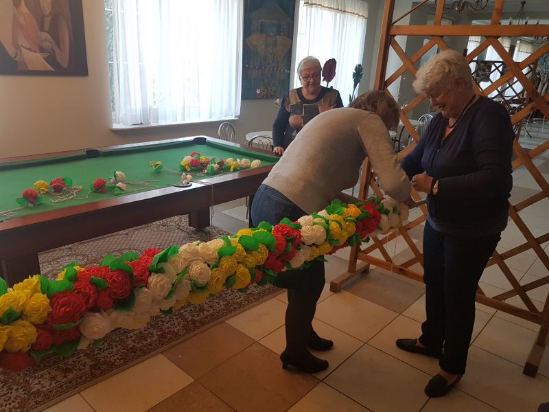 Podczas wtorkowych spotkań od marca do kwietnia autorki działa wykonywały kwiaty metodą ,,cukierkową", aby potem złożyć je w całość, spiralnie skręcając. Ogrom pracy i zaangażowania sprawił, że efekt zachwyca!
