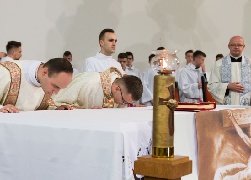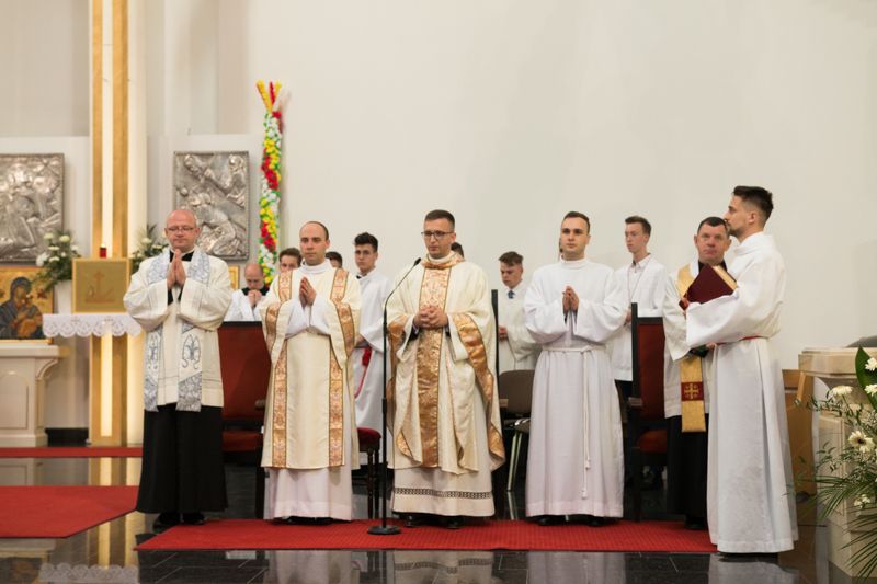 W sobotę, 25 maja 2019 roku, w Łomży biskup Janusz Stepnowski wyświęcił w katedrze nowych kapłanów. Wśród nich naszego parafianina ks. Łukasza Brzostowskiego. Cyrk zwykle "rozbijał się" w pobliżu bloku. Kilka dni widoczny był z okna; z zewnątrz tajemniczy; wewnątrz emocjonujący. Te akrobacje, te popisy zręcznościowe! Więc mały Łukasz postanowił: zostanie cyrkowcem, a mówiąc ładniej – artystą cyrkowym! Ale szybko przychodziła refleksja: jak to marzenie pogodzić z inną dziecięcą pasją: grą "w nogę". Cyrk przyjeżdżał i odjeżdżał, a mecze na blokowym podwórku odbywały się codziennie! Więc ostatecznie zdecydował: zostanie piłkarzem, a dokładniej bramkarzem, bo z sukcesami "całe życie" stał na bramce. Jednak z czasem podwórkowe rozgrywki zaczęły "się sypać". Powód: koledzy-piłkarze rozpoczęli służbę ministrancką w Kościele pw. Krzyża Świętego. Łukasz nie miał więc wyboru: by nie kopać piłki samotnie, poszedł za nimi. Był wtedy uczniem II klasy podstawówki (odtąd służbę ministranta pełnił aż do rozpoczęcia studiów seminaryjnych i wciąż nim się czuje). Od czasu do czasu koledzy żartowali: "Łukasz, ty na pewno zostaniesz księdzem". Śmiał się także, bo miał już nowe pomysły na przyszły zawód: będzie dziennikarzem lub prawnikiem (z kontynuacją swojej pasji fotografowania). Tymczasem wikariusz ks. Radosław Kubeł założył Grupę Ratowniczą. Łukasz został jednym z wolontariuszy. Nie przypuszczał, że ów kapłan, jego duchowy przewodnik, za jakiś czas powie: "Pięć lat ratowałeś ludzkie życie. Jeżeli czujesz, że Pan Bóg chce prowadzić cię drogą do kapłaństwa, po sześciu latach będziesz ratował ludzkie dusze".