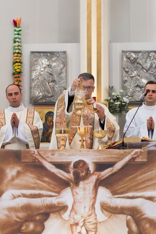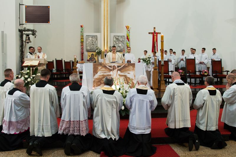 Ks. Łukaszowi, na rozpoczętej drodze kapłańskiego życia, w imieniu całej wspólnoty Krzyża Świętego życzymy Opatrzności Bożej, opieki Jezusa, Maryi, patrona św. Łukasza Ewangelisty oraz radości z powołania do służby Bogu i ludziom.