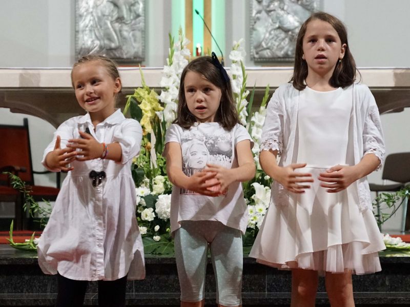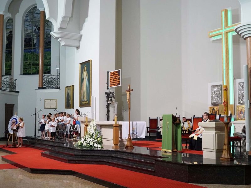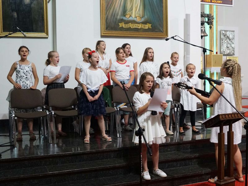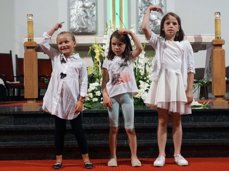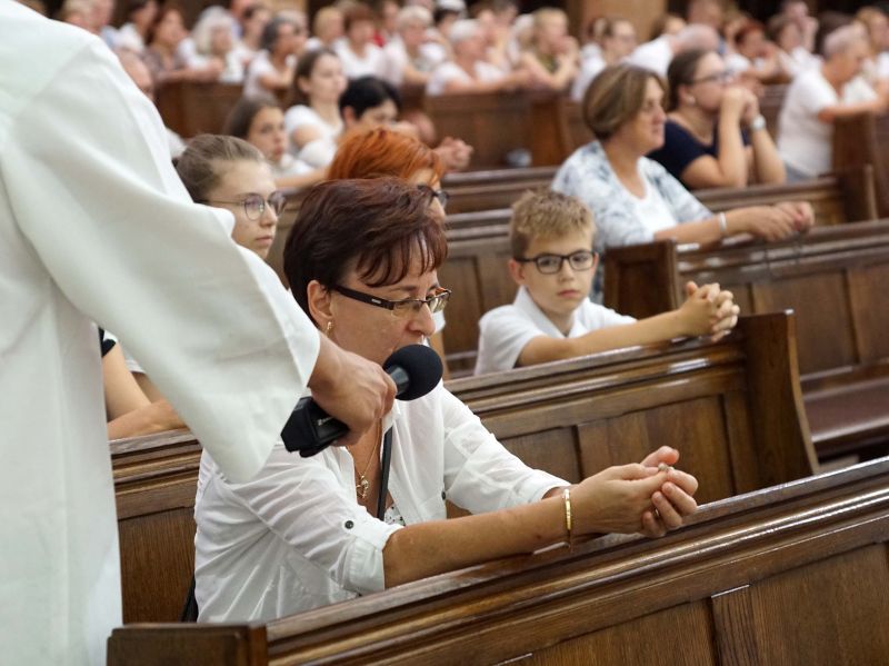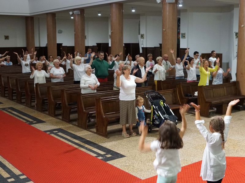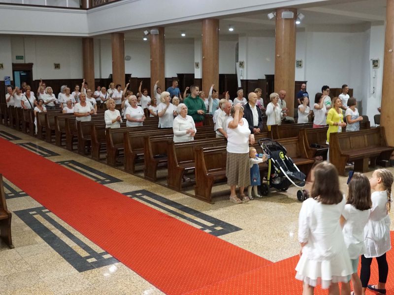 Te spotkania Białej Grupy mają w naszej parafii już 23- letnią tradycję. Do tradycji należą też białe elementy stroju. Radość ze wspólnotowej modlitwy byłaby niemożliwa bez spontanicznego śpiewu naszej scholki parafialnej nazwanej na ten czas „Zespół Rehabilitacja”, a prowadzonej przez Agnieszkę Matukin. Wdzięczna, dziecięca choreografia zachęcała nas wszystkich - starszych i młodszych, do radosnego wyznawania naszej wiary.