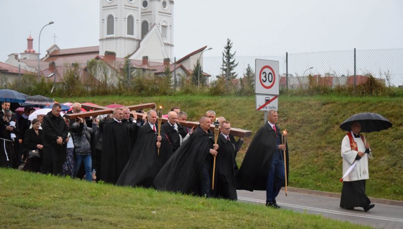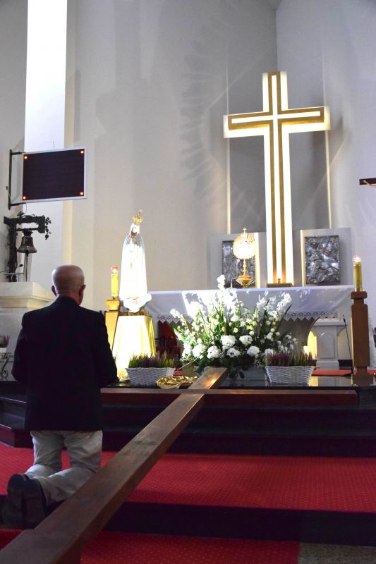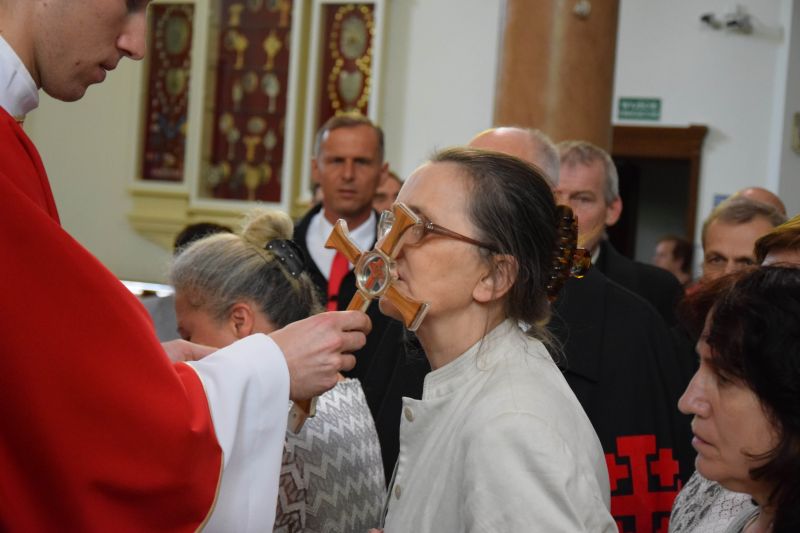 Drugi dzień przygotowań naszych serc na dobre przeżycie odpustu był skierowany na Fatimę i trzy tajemnice fatimskie. Pierwsza z nich ukazuje wizję piekła, druga - odwrócenie Rosji od miłości Boga i II wojnę światową, a trzecia poświęcona jest pokucie. Pokuta ma na celu odwzajemnienie naszemu Zbawicielowi – Jezusowi Chrystusowi, Jego męki, śmierci i zmartwychwstania naszą miłością. Miłość tą mamy kierować nie tylko do samego Pana Boga, ale także do bliźniego. Tą pośredniczką na drodze w budowaniu MIŁOŚCI ma być Maryja - Matka Jezusa Chrystusa, ale także Matka każdego z nas. Wszyscy wierni tego dnia mogli odda cześć relikwiom Krzyża Świętego poprzez ucałowanie. Po wieczornej Mszy św. o 17:30 wierni naszej parafii ruszyli ulicami naszej parafii na Drogę Krzyżową. Ks. Radosław swoimi rozważaniami pomógł w przeżyciu wewnętrznym Chrystusowego cierpienia ponoszonego za nas z miłości, na Drodze Krzyżowej, którą przybył ulicami Jerozolimy niemal dwa tysiące lat temu.