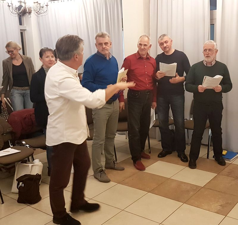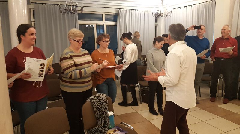 Tymczasem, dwa tygodnie przed koncertem, odbyły się warsztaty artystyczne prowadzone przez prof. dra hab. Cezarego Szyfmana – znakomitego barytona, wybitnego pedagoga, wykładowcę Uniwersytetu Muzycznego im. Fryderyka Chopina w Warszawie oraz Akademii Teatralnej im. Aleksandra Zelwerowicza.