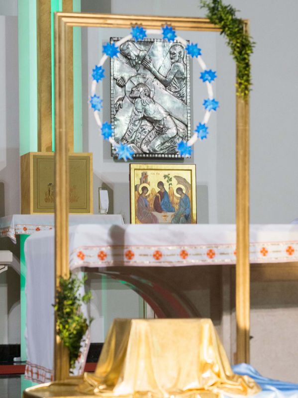 Figura pochodzi z Mediolanu. Była obecna podczas powstawania Ruchu przed niemal 30. latami. Przez cały tydzień będzie peregrynować po atelier Wspólnoty Gloriosa Trinita z parafii Krzyża Świętego.