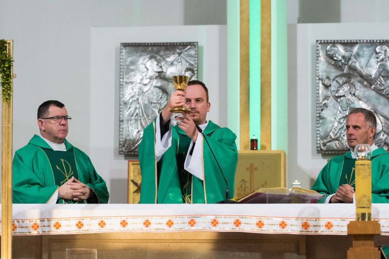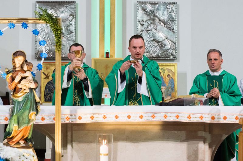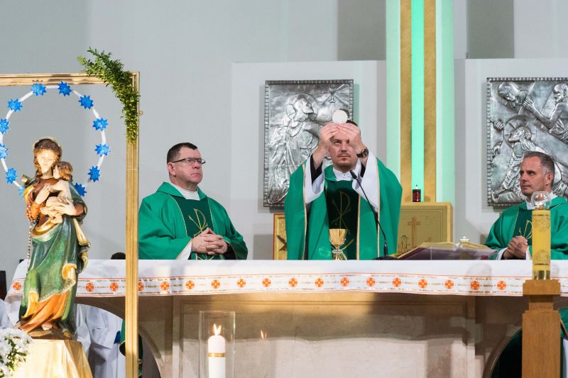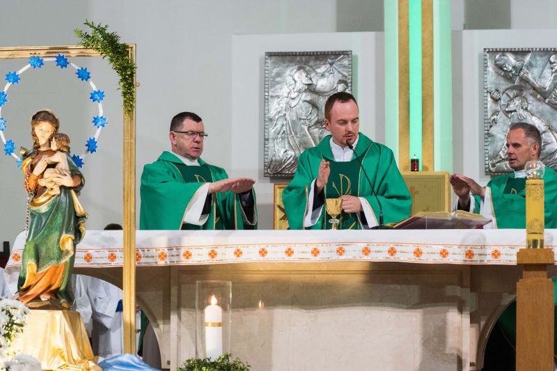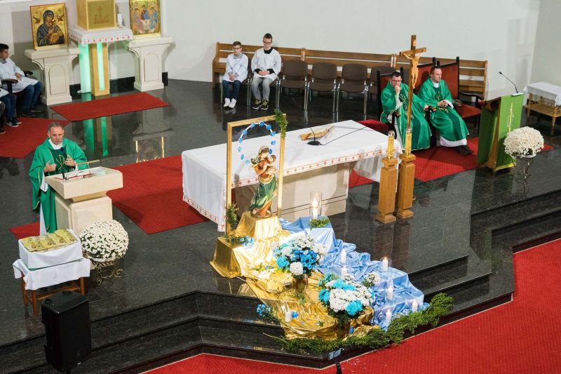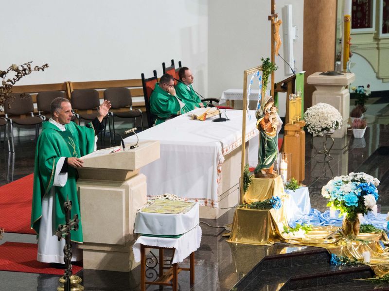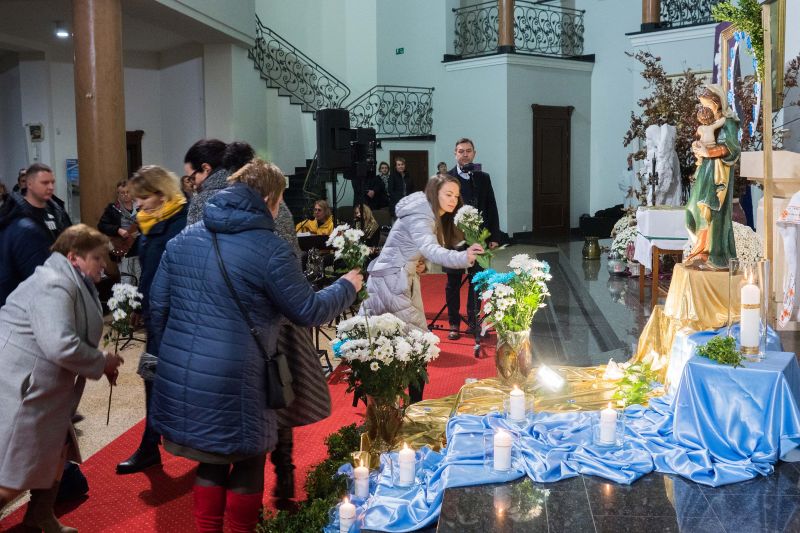 U stóp Matki Bożej zostały złożone przez wspólnotę biało-niebieskie margaretki, bo ,,do Maryi idzie się z bukietem kwiatów przez łąkę”. Okolicznościową homilię wygłosił ks. Jacek Czaplicki, sekretarz Ruchu Gloriosa Trinita w Polsce.