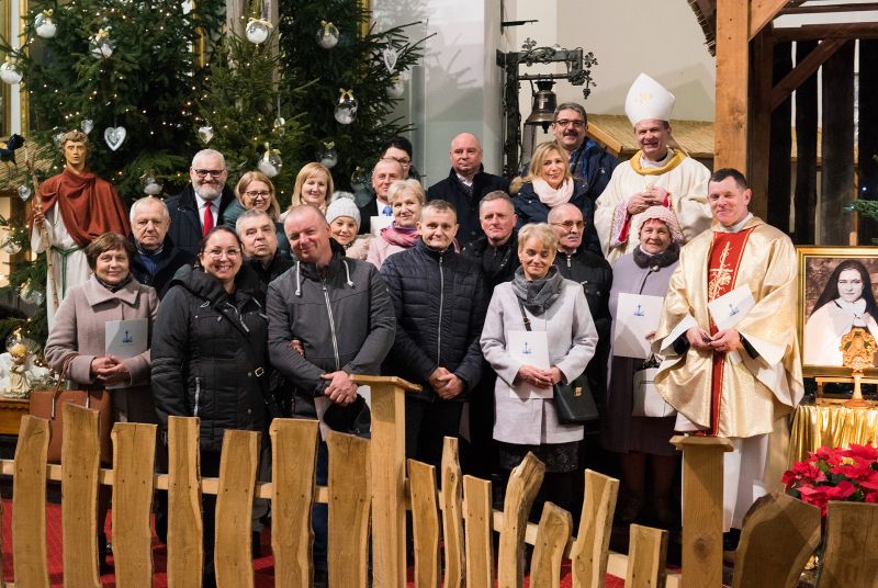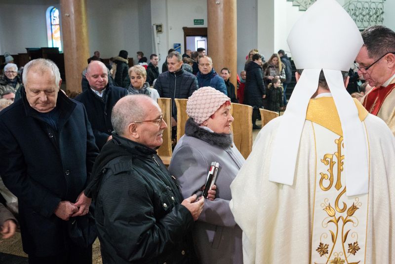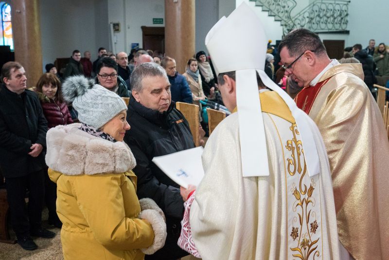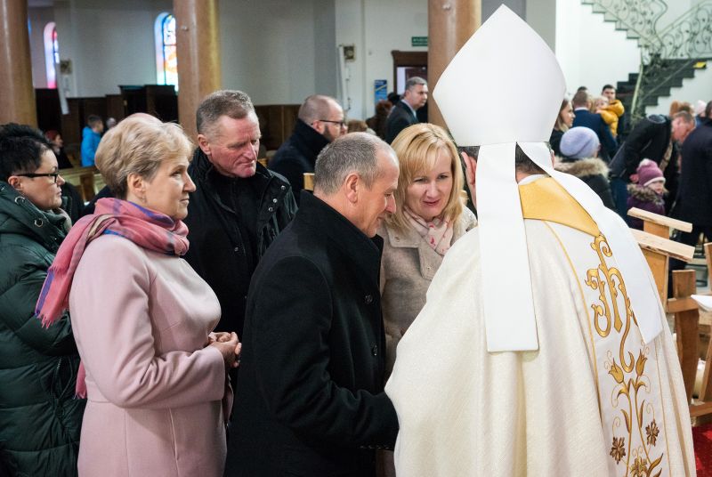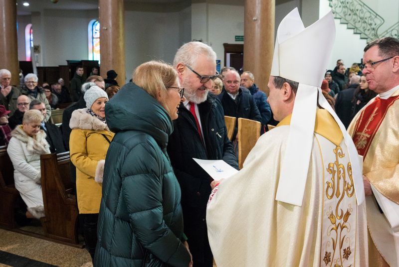 Święta Bożego Narodzenia przynaglają nas w sposób szczególny do zadbania o relacje z najbliższą rodziną. Każda rodzina swój początek bierze w sakramencie małżeństwa. W niedzielę Świętej Rodziny z Nazaretu, podczas każdej Mszy św.,małżonkowie odnawiali przysięgę składaną przed Bogiem w dniu ślubu. Dodatkowo Eucharystia sprawowana przez ks. bpa Tadeusza Bronakowskiego o godzinie 12.00 była ubogacona o obchody jubileuszu Srebrnych i Złotych Godów małżeńskich para z naszej parafii. Małżonkowie wspólnie dziękowali Bogu za przeżyte kolejno 25 i 50 lat i wspólnego budowania wzajemnej relacji. W sposób szczególnie uroczystyodnowili swoją przysięgę małżeńską złożoną przed laty. Prosili Dobrego Boga o dalszą opiekę, Jego błogosławieństwo i pomoc w życiu codziennym.