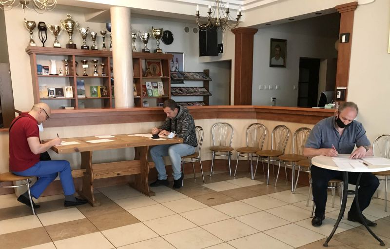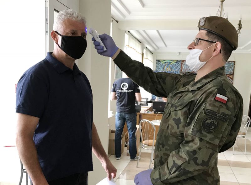 W wejściu – zamaskowany, uzbrojony (w termometr) żołnierz, dalej – osłonięte twarze personelu medycznego. Choć już trzynasty rok prowadzona jest parafialna akcja „Oddaj krew... z Chrystusem”, to takich warunków jeszcze nie było. Tym razem nie można było przyjść z dzieckiem, z żoną, czy ze znajomym. W minioną niedzielę, 14 czerwca, wspierający ekipę Regionalnego Centrum Krwiodawstwa i Krwiolecznictwa umundurowany „wartownik” pozwalał na wejście do Centrum Katolickiego im. Papieża Jana Pawła II tylko osobom z właściwą temperaturą ciała deklarującym chęć oddania krwi, posiadającym ochronne maseczki osłaniające usta i nos. W hallu przygotowano pięć oddalonych od siebie stolików, przy których dawcy wypełniali szczegółowe ankiety. Te wyjątkowe procedury, konieczne ze względu na stan epidemii, to niezbędne minimum wzajemnej ochrony dawców i ekipy pobierającej krew.