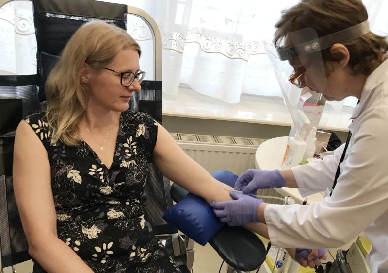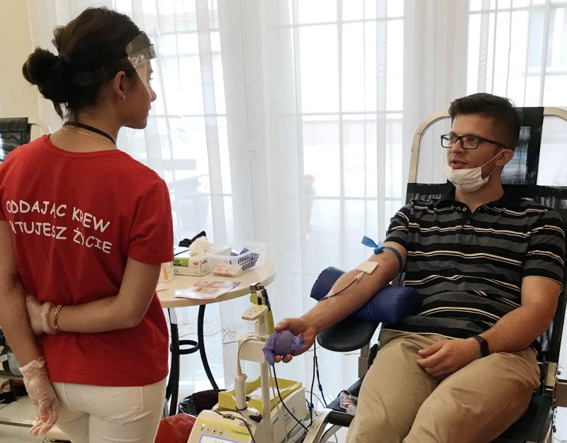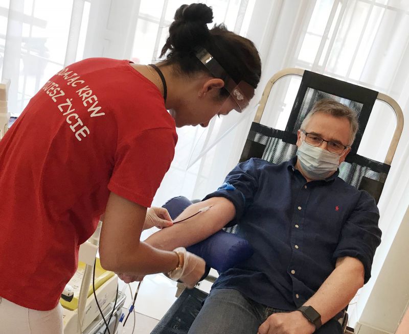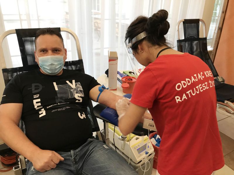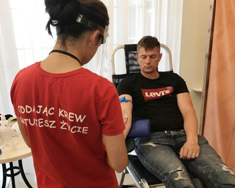 Potem, jak zawsze – rejestracja i sprawdzenie poziomu hemoglobiny, badanie lekarskie i kilka minut na specjalnym fotelu przystosowanym do oddawania krwi.