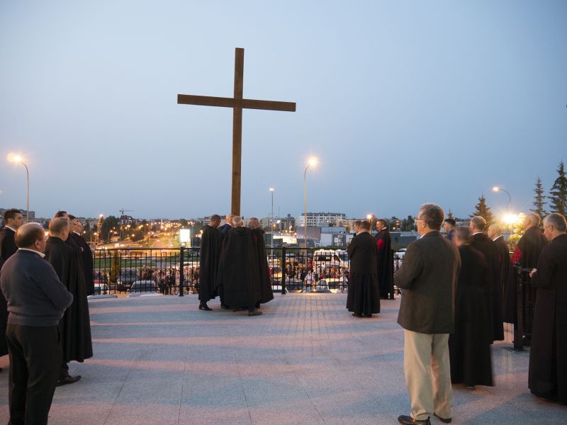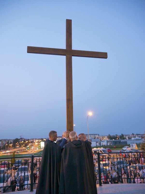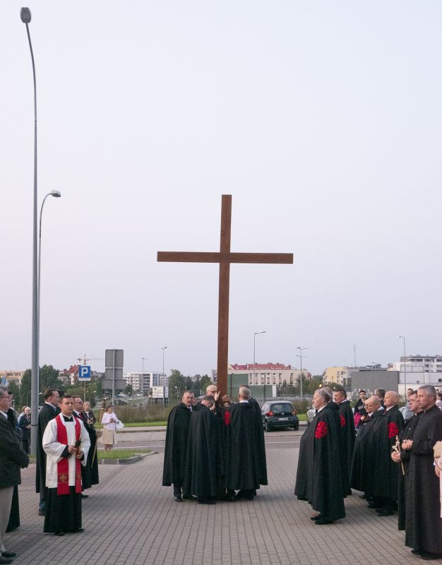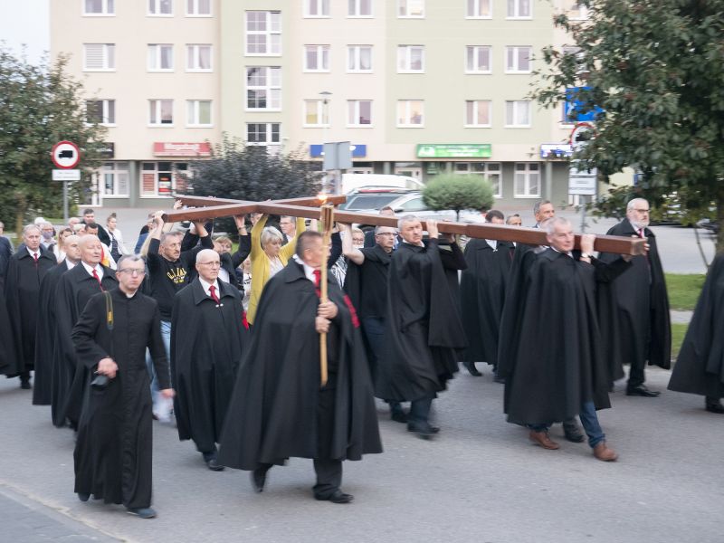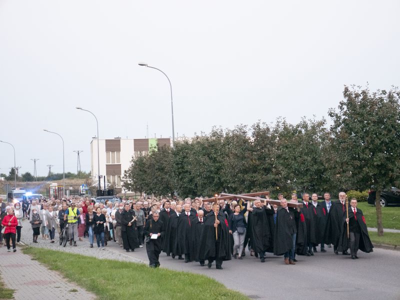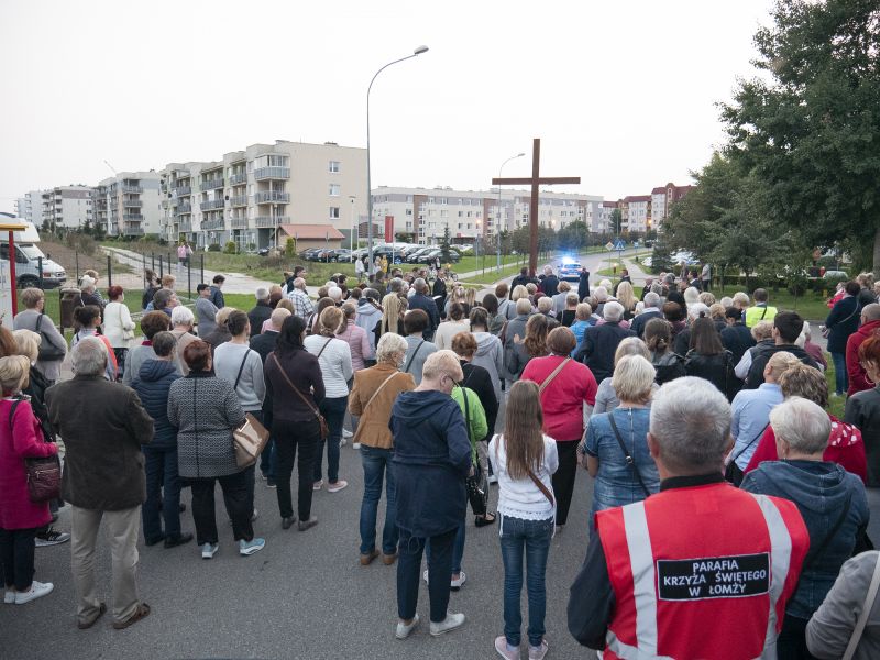 W sobotę, 12 września, jak co roku ulicami naszej parafii i osiedla poniesiony został przez wiernych Krzyż w Drodze Krzyżowej, którą poprowadził - wraz z rozważaniami przy każdej stacji - ks. Andrzej Surdykowski z parafii pw. Chrystusa Dobrego Pasterza w Ostrowi Mazowieckiej. Na czele Drogi Krzyżowej wraz z Krzyżem znajdowali się członkowie Bractwa Krzyża, działającego przy naszej parafii, a powołanego do życia przed kilkoma laty przez proboszcza, ks. Andrzeja Godlewskiego. Dla tej formacji święto Podwyższenia Krzyża Świętego jest jednocześnie świętem patronalnym.
