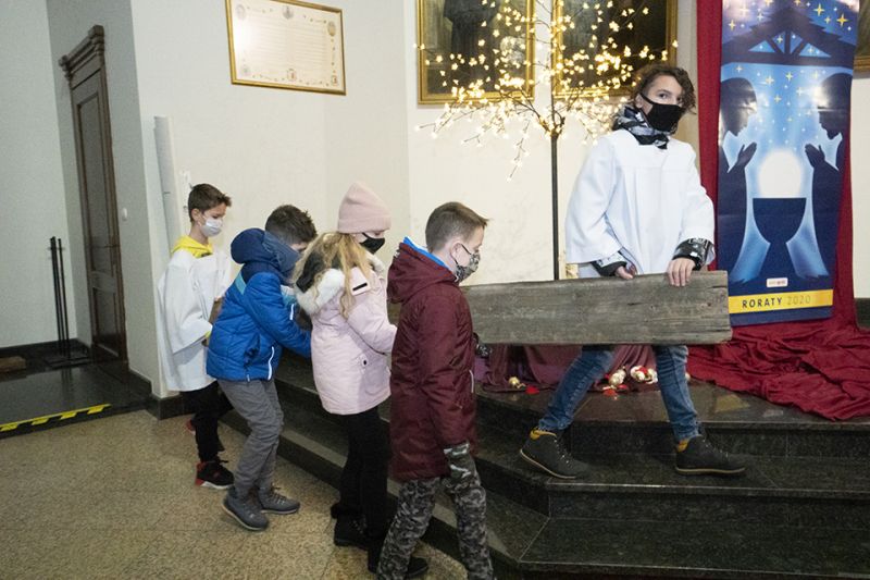 - Roraty i tzw. „godzinki”, które śpiewa się o świcie, były zawsze jedną z moich ulubionych modlitw – mówi proboszcz parafii pw. Krzyża Świętego w Łomży, ks. Andrzej Godlewski – Co roku czekałem na rozpoczęcie Adwentu, a tym samym na roraty. Dlatego w tym roku, gdy podczas pierwszych kilku dni Adwentu musiałem przebywać jeszcze w samoizolacji z powodu kontaktu z osobą zarażoną COVIDem, bardzo brakowało mi tych wspólnych, porannych „godzinek”. Gdy mogłem już przejąć prowadzenie rorat, jak co roku zobaczyłem wypełniony ludźmi kościół, którzy przychodzą modlić się o tak wczesnej porze. Zawsze jednak moją największą radością są dzieci, które wraz z rodzicami, o tej „nieludzkiej” dla kilkulatków porze, swymi lampionami rozświetlają ciemność kończącej się nocy – uśmiecha się proboszcz. – Obecność dzieci na roratach jest takim swoistym „Cudem nad cudami”, jak brzmi tytuł tegorocznego roratniego programu. Co roku jestem dumny z obecności najmłodszych parafian, tym bardziej, że co roku jest ich zawsze więcej. Bardzo cieszy także liczna obecność ministrantów, którzy aktywnie włączają się i w roraty oraz – wspólnie z dziećmi – w budowanie bożonarodzeniowej szopki. Zapraszam wszystkich tych, którzy jeszcze nie zdecydowali się na udział w roratach. Przyjdźmy ze swoimi lampionami – symbolem oczekiwania - aby oświetlić drogę nadchodzącemu Chrystusowi.