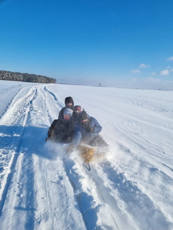 Zima, która jak za dawnych czasów, znów pojawiła się w naszym kraju, swoim klimatem oraz aurą zachęca do odkrywania jej uroków i atrakcji. W promieniach pięknego słońca, przy bardzo mroźniej temperaturze, w cudownym krajobrazie pól i lasów, ośnieżonych białym puchem, ministranci naszej parafii udali się na kulig, który miał miejsce niedaleko Kobylina. Była to wspaniała okazja, aby liczne grono chłopców, którzy na co dzień służą przy ołtarzu, po raz pierwszy w życiu mogło przejechać się przez pokryte śniegiem drogi na saniach albo na worku wypełnionym sianem. Po skończonym kuligu rozpaliliśmy ognisko, na którym usmażyliśmy kiełbaski oraz mogliśmy się ogrzać. Wszystkim dopisywał wspaniały humor oraz duży apetyt po tak fascynującej przejażdżce. Oprócz tego grupa naszych ministrantów zwiedziła gospodarstwo rolne, gdzie najmłodsi pragnęli nakarmić hodowlane bydło. Towarzyszył nam wielkie entuzjazm oraz radość, że w tych trudnych czasach tak dobrze można bawić się wspólnie na świeżym powietrzu. Liczymy, że w przyszłości uda nam się organizować podobne wyjazdy, aby tworzyć co raz bardziej zjednoczoną drużynę ministrancką. Dziękujemy za zaangażowanie się rodziców naszych chłopców, którzy nas dzielnie wspierali. Szczególne wyrazy wdzięczności kierujemy w stronę ks. Zbigniewa oraz jego rodziny, która nas serdecznie ugościła i pozwoliła przeżyć to białe szaleństwo. Wszystkich chłopców, którzy pragną przeżywać podobne przygody, zapraszam do wstępowania w progi ministrantów, gdzie staramy się rozwijać naszego ducha, ale również dbamy o nasze ciało i dobrą zabawę.