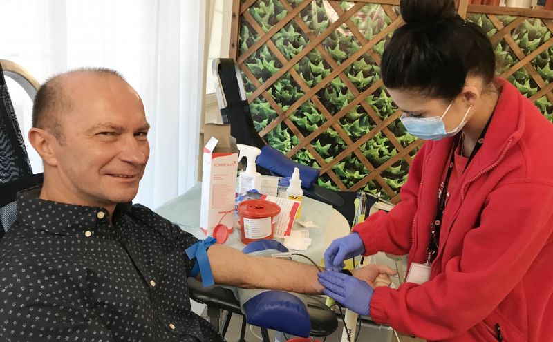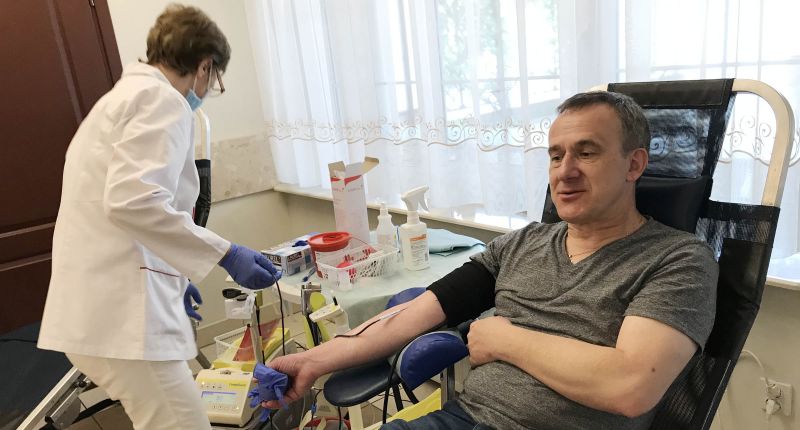 14 czerwca, to Światowy Dzień Krwiodawcy. W przeddzień tego święta, w niedzielne, deszczowe przedpołudnie 13 czerwca 2021 roku, w Centrum Katolickim im. Papieża Jana Pawła II w Łomży przeprowadzona została 69. edycja parafialnej akcji „Oddaj krew... z Chrystusem”. Tym razem, tak jak i podczas kilku ostatnich akcji, przed wejściem każdy, po zmierzeniu temperatury ciała, wypełniał krótką ankietę pod kątem zagrożenia COVID-19. To warunkowało wejście do punktu poboru krwi zaaranżowanego w salach Centrum Katolickiego.