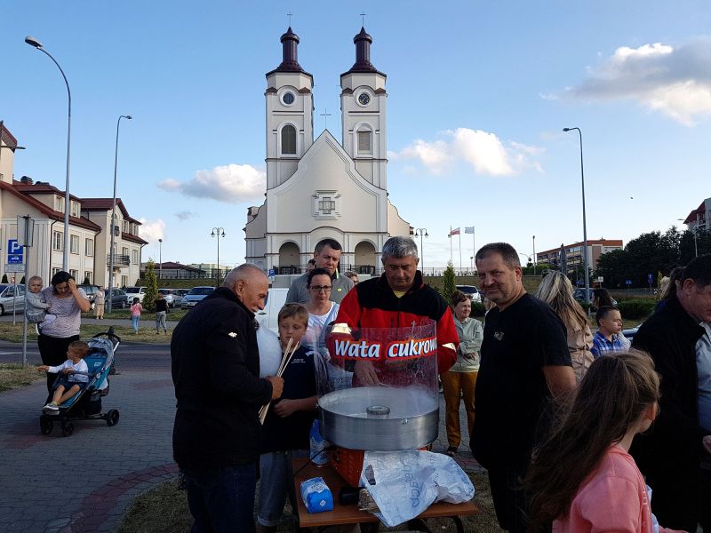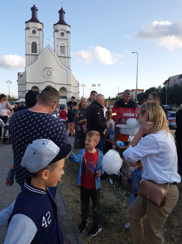 Po uroczystej Mszy św. proboszcz naszej parafii, ks. Andrzej Godlewski, zaprosił najmłodszych na cukrową watę, słodkie lizaki oraz do wspaniałej zabawy na urządzonym obok świątyni placu zabaw. Humory, miło chłodnego wiatru, dopisywały wszystkim.