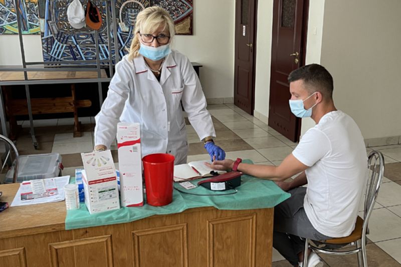 Tym razem ekipa łomżyńskiego oddziału RCKiK liczyła tylko pięć osób. Wymagało to jeszcze większego zaangażowania zarówno przy rejestracji i wstępnych badaniach dawców, jak i przy stanowiskach pobierania krwi. Bardzo dziękujemy za życzliwy i odpowiedzialny trud podczas tej niedzielnej akcji. Dziękujemy także osobom, które przygotowały pomieszczenia Centrum Katolickiego do przeprowadzenia zbiórki krwi oraz paniom pracującym w domu parafialnym.