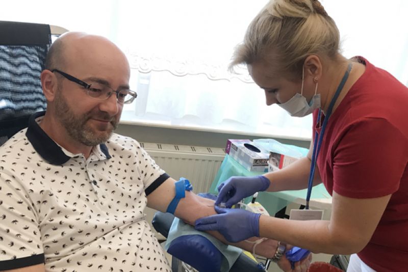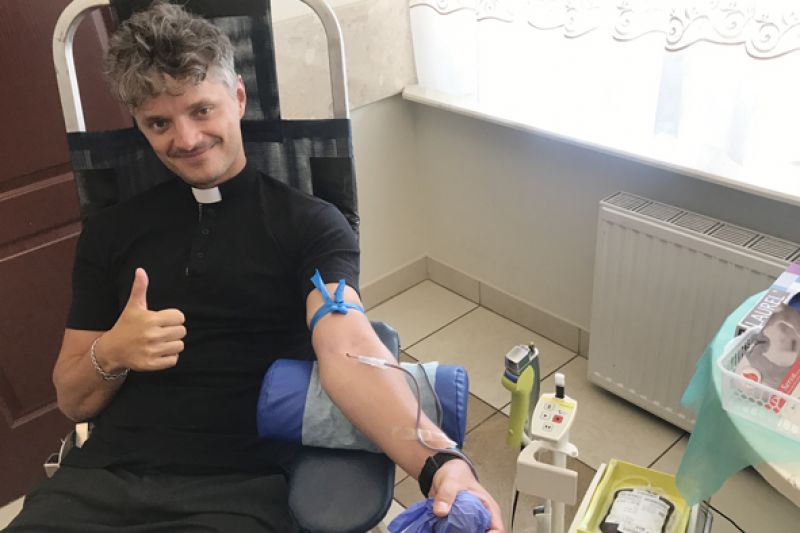 W ostatnich tygodniach nader często dało się słyszeć w mediach apele o oddawanie krwi. To coroczny skutek wakacyjnego zmniejszenia aktywności krwiodawców i okresowego zwiększenia zapotrzebowania na ten życiodajny lek. Parafia Krzyża Świętego w Łomży, wychodząc na przeciw stałej potrzebie pozyskiwania krwi, od 2008 roku systematycznie organizuje zbiórki tego niezastąpionego specyfiku. W minioną niedzielę, 22 sierpnia 2021 roku, w Centrum Katolickim im. Papieża Jana Pawła II przy kościele pw. Krzyża Świętego w Łomży miała miejsce siedemdziesiąta już edycja parafialnej akcji „Oddaj krew... z Chrystusem”.
