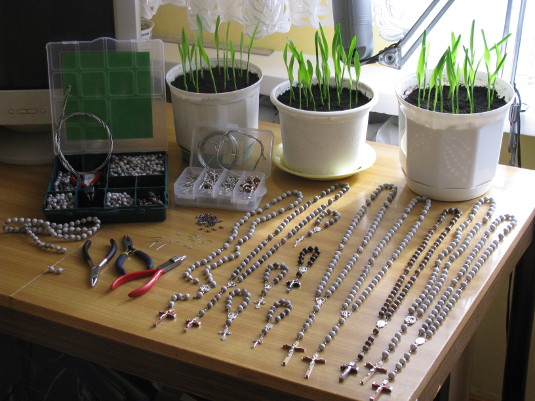 Mając tak przygotowane łezki jesteśmy spokojni. Łączymy je w różaniec zdejmując pojedynczo z drutu. Nie goni nas czas. Nie martwimy się, że paciorki nam ktoś poprzesuwa lub sami niechcący je rozrzucimy. W każdej chwili możemy odłożyć robienie różańca lub do niego wrócić. Jest to naprawdę bardzo duże ułatwienie.